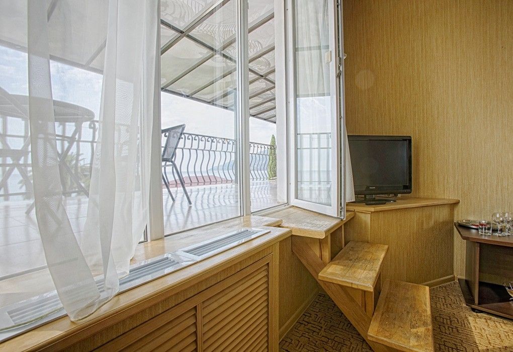 Не хочется отмечать как минус, скорее рекомендация и отзыв. В люксовых номерах имеется шикарный балкон с видом на море, и что бы взойти ра него нужно преодолеть 3 крутых ступени. Людям у которых имеются затруднения с передвижением, это составляет не большую но сложность. И наличие небольшого поручня с одной стороны ступенек позволило бы людям наслаждаться прекрасным видом с балкона намного большое.