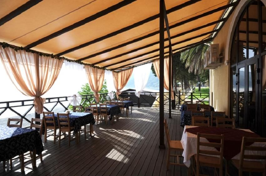 Питание гостей осуществляется 3 раза в день по системе «шведский стол» в основном ресторане пансионата. Здесь подают блюда русской, итальянской и абхазской кухни, приготовленные из лучших местных продуктов.