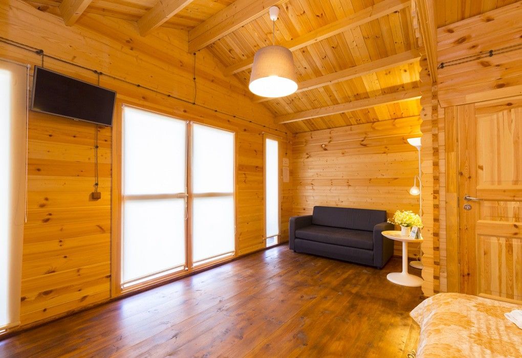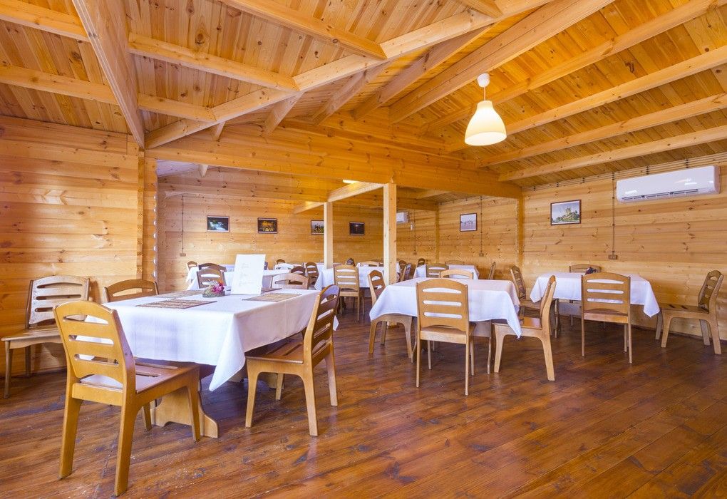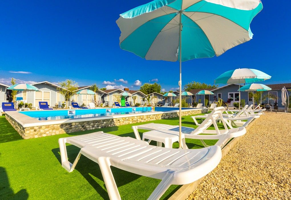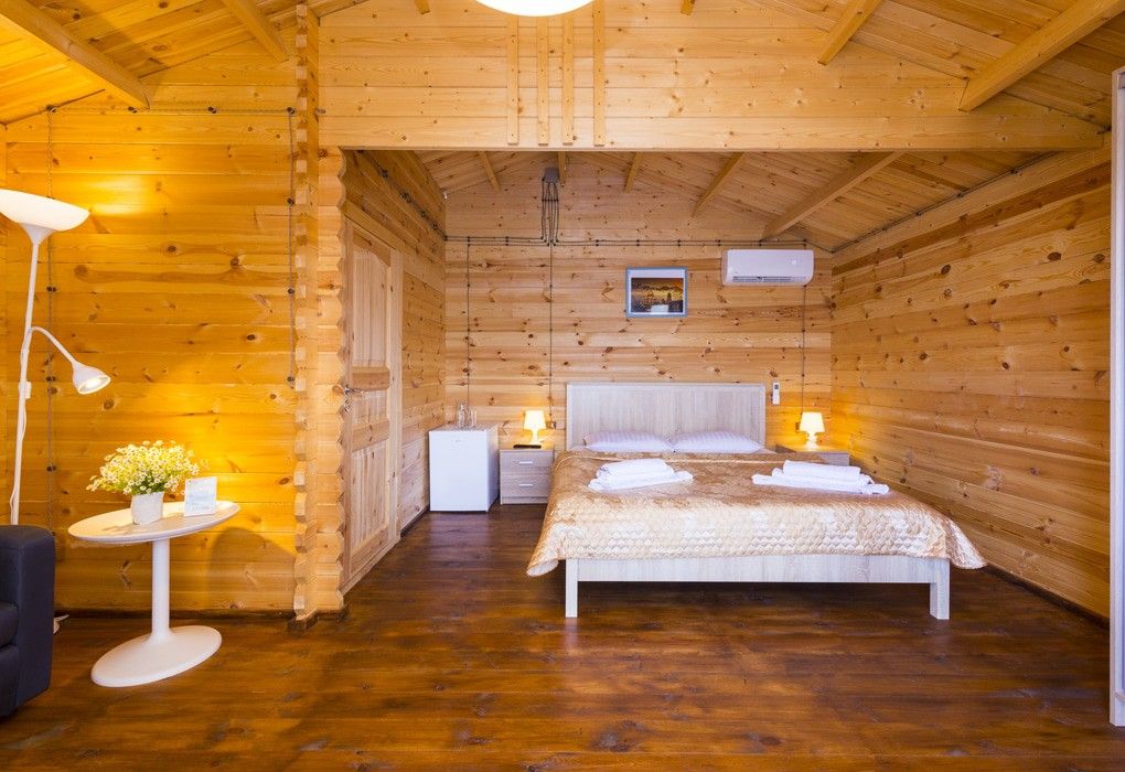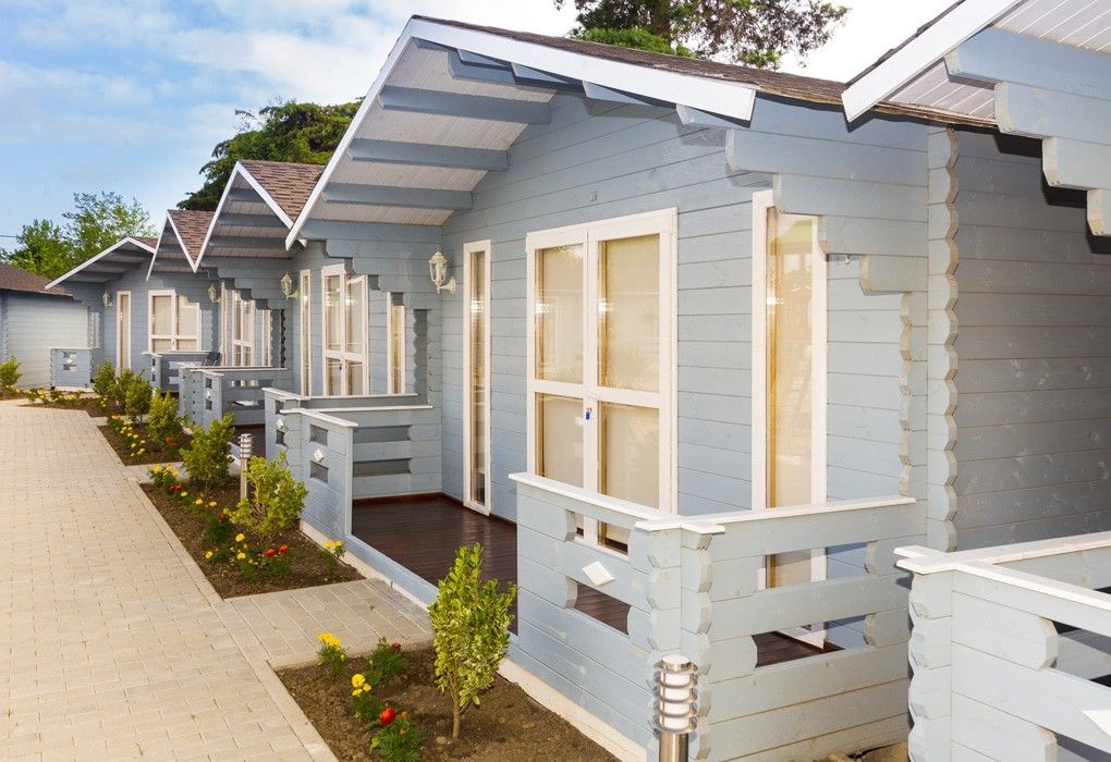 В распоряжении гостей - 19 коттеджей. Каждое помещение рассчитано на двоих и оснащено всем необходимым: двуспальной кроватью, диваном и еврораскладушкой, кондиционером, телевизором, душевой, санузлом, мини-холодильником и просторной террасой. Площадь коттеджа - 20 м2.