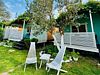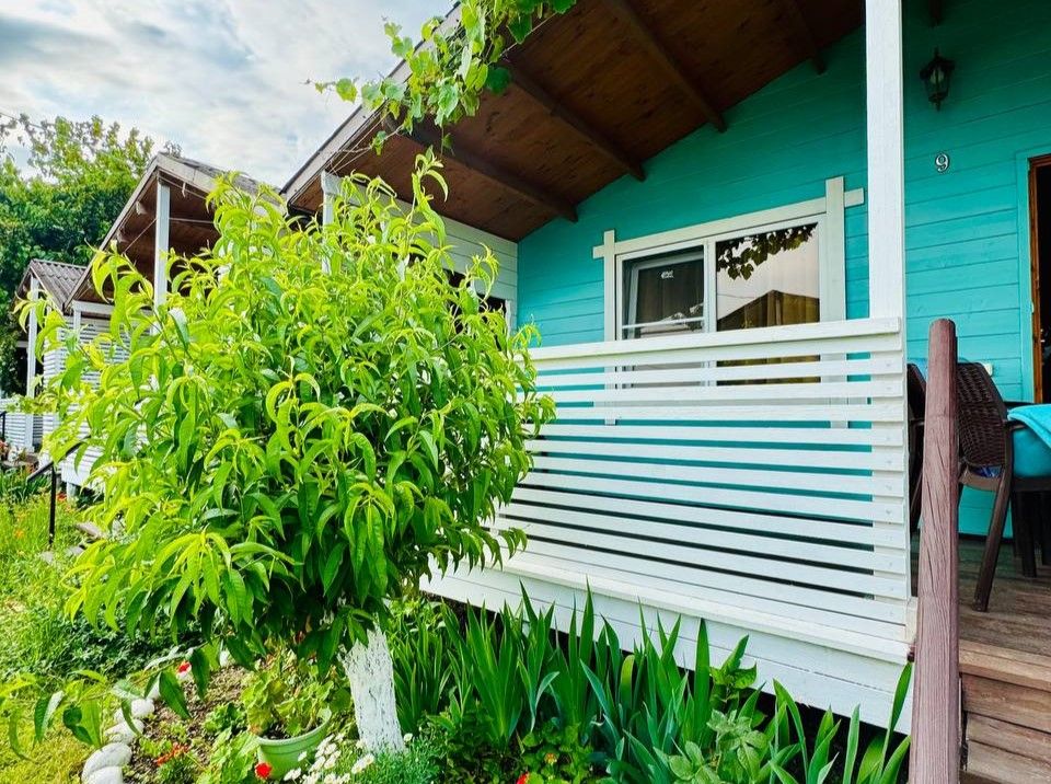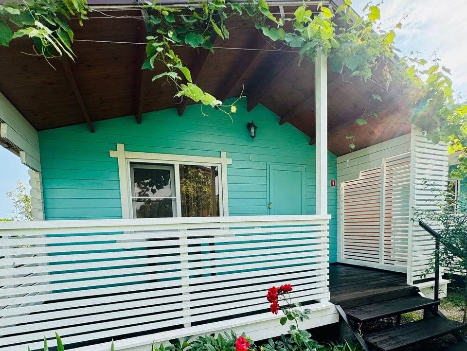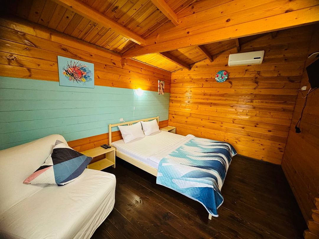 Для размещения предлагается комфортабельный коттедж на 4 человек. Интерьер оформлен в светлых спокойных тонах, использована мебель из дерева. В коттеджах размещены двуспальная и односпальная кровати, кресло-кровать, шкаф, тумбочки, стол, стулья, сушилка для одежды; предусмотрена терраса. Wi-Fi, сплит-система, спутниковое ТВ, холодильник, душ и санузел.