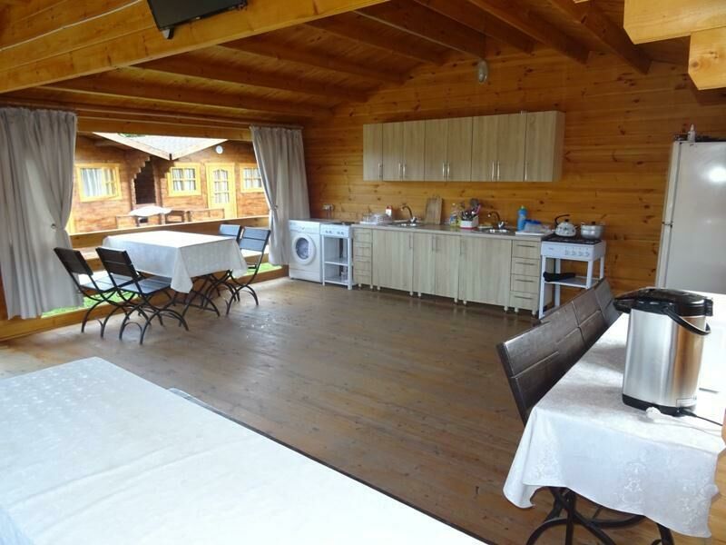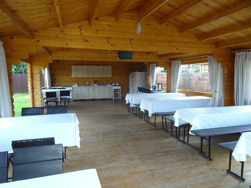 Для удобства гостей на базе отдыха организована общая кухня, рядом есть зона для барбекю. В распоряжении гостей каркасный бассейн, для автовладельцев оборудована охраняемая парковка на 15 мест, а для детей — игровая площадка.
