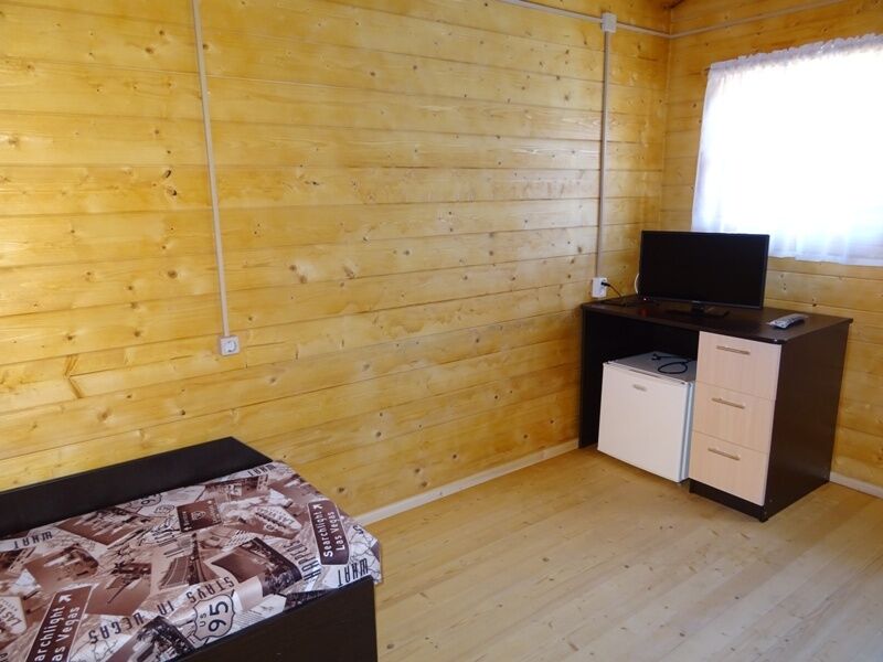 Комплекс, занимающий закрытую благоустроенную территорию, включает в себя 15 одноэтажных деревянных домов — мини-коттеджей. В домиках установлена сплит-система, есть телевизор, мини-холодильник и необходимая мебель, также в каждом коттедже предусмотрен индивидуальный санузел с душевой кабиной.