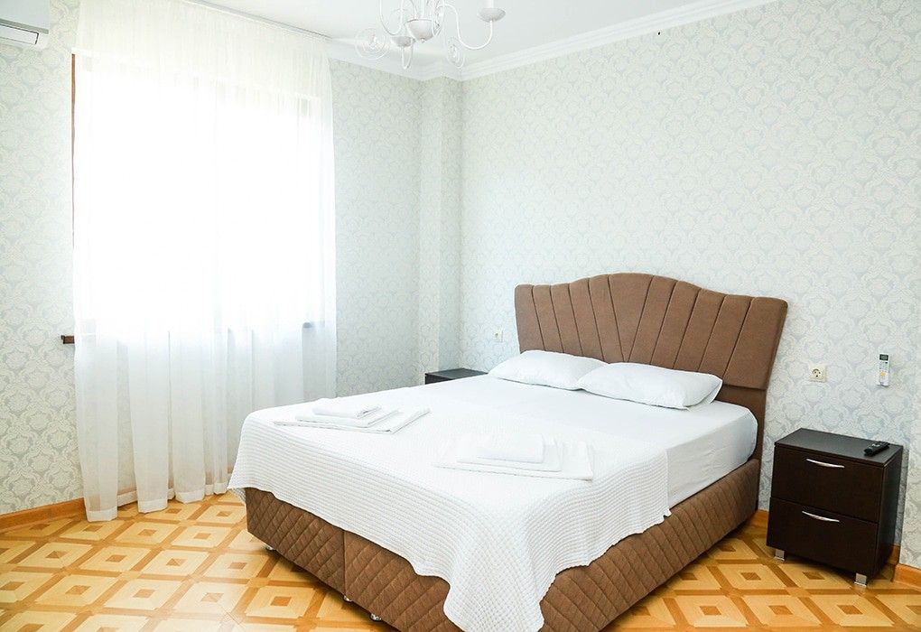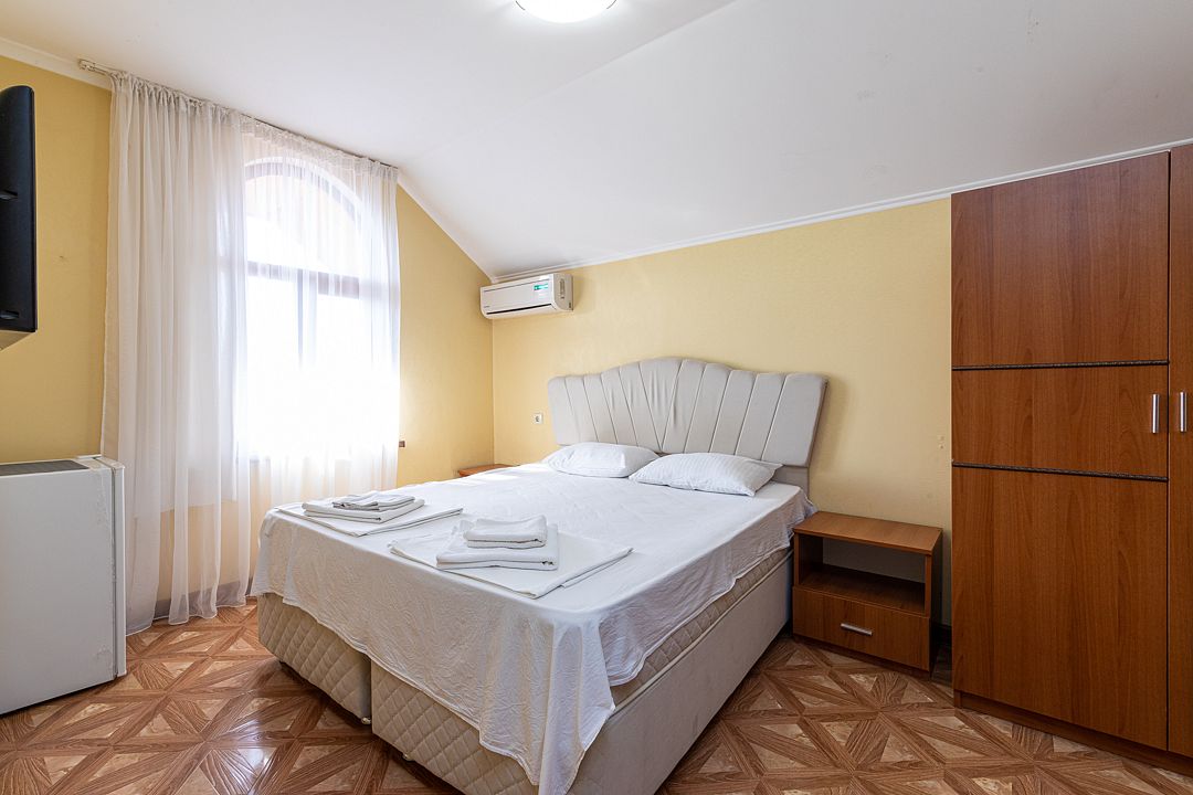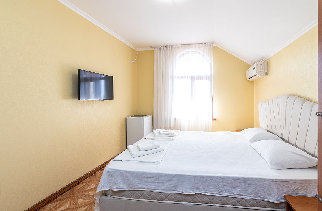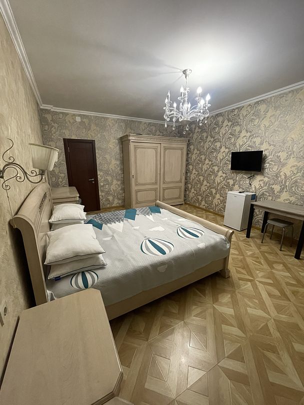 На территории имеется внутренний дворик, клумбы, миниатюрные лужайки, а также места для отдыха. Номера гостевого дома от «стандарта» до «люкса» оснащены всем необходимым для комфортного проживания: холодильником, телевизором, удобной мягкой мебелью, бесплатным Wi-Fi, а также индивидуальной ванной комнатой с душем.