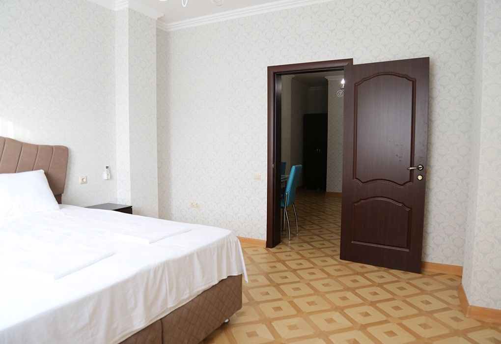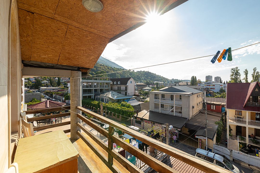 "Невские звёзды" небольшой семейный отель, хозяин отеля Леонид отзывчивый человек, хотя ранее читая отзывы об отеле видел отрицательные комментарии о нём. Но пообщавшись в живую и наблюдая как он общается с другими гостями хочу сказать, что многие приезжие сами не умеют себя вести. Когда приезжаешь в гости, не нужно ставить себя выше хозяина и изображать из себя бояр. Как вы общаетесь, такое же отношение будет и к вам. Мы прекрасно прожили две недели в отеле и взаимоотношения и с Леонидом, и с его женой Мариной, и с их сыном Омаром были замечательные. Теперь об отдыхе, отель расположен метрах в ста от пляжа. Мы снимали двухкомнатный люкс на втором этаже, окно спальни выходило в тихий соседний двор, окно гостиной на стену соседнего дома, но к сожалению это особенности застройки и такая проблема во многих домах, они стоят близко друг к другу. В номере есть холодильник, чайник, два телевизора, два кондиционера. В спальне большая кровать, в гостиной диван. Санузел совмещённый душ, раковина, унитаз, водогрей, есть фен. На всех этажах есть вайфай, правда иногда нестабильный, но не критично. Уборка номеров происходит раз в 10 дней, если живёте долго. В Гагре часто отключают электричество из-за перегрузки сетей, в самом отеле тоже бывает перегрузка автоматов, поэтому выключайте кондиционеры, когда уходите из номера. В стоимость проживания включён завтрак который готовит хозяйка Марина. Завтрак скромный, всегда каша, хлеб, чай, кофе, иногда творог, колбаса, сыр, запеканка, варёные яйца. Если хотите что-то ещё из меню, то по договорённости с Мариной и за дополнительную плату, так же как обед и ужин. Но это не проблема, вокруг отеля несколько столовых и магазинов, мы колбасу, сыр, лимон и йогурты покупали и этим вносили разнообразие в свой завтрак. Прямо у входа в отель есть небольшая пекарня, выпечку готовит Земфира, у неё кстати мы покупали питьевую воду в номер.