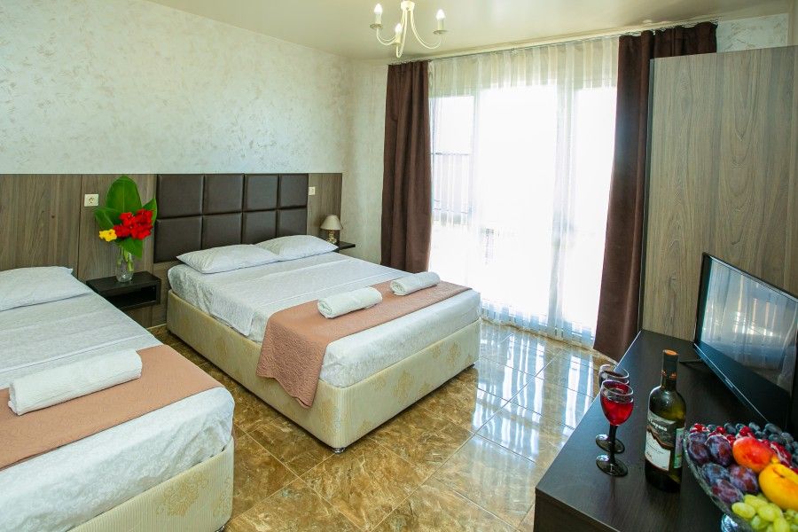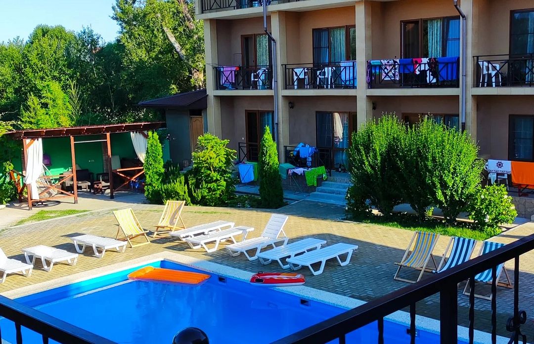 Путешествие с семьейОтдых в отеле ЭколайфПрекрасно провели отпуск. Отель соответствует описанию и фото в объявлении. Аккуратный, симпатичный, небольшой отель. Бассейн расположен прямо перед отелем. Всегда чистая, постоянно подсвежаемая вода. Для детей да и для взрослых отличная альтернатива морю. Вокруг бассейна достаточное количество шезлонгов. Двор красиво и с любовью оформлен зелёными насаждениями. Номера с отличным ремонтом. В номере все эргономично расположено. Удобные кровати, чистое бельё. В санузле хорошая, современная сантехника, чистые полотенца. Нам очень понравился просторный балкон. На балконе стоит столик и кресла. Очень приятно провести вечер с бокальчиком местного вина, наслаждаясь звуками природы и свежайшие морским воздухом. Можно заказать питание в отеле, а именно завтрак и ужин. Повар Наталья выше всяких похвал. По-моему за 10 дней ни разу не повторилось ни одно блюдо. Каждый день удивляет новым меню. Приготовлено всё вкусно, по домашнему. За выпечку десять из десяти баллов. Корпус столовой в нескольких метрах от здания отеля. Море, без всякого приувеличения в двух шагах. Позади отеля горная речушка с прохладной водой.