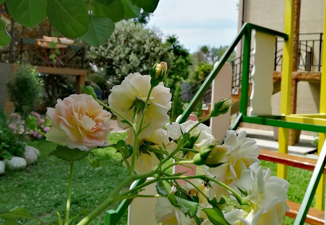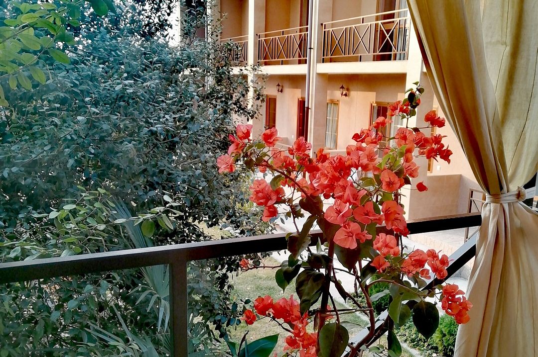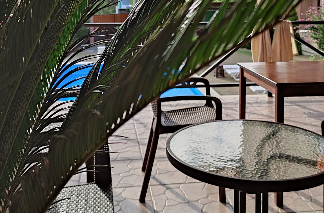 Расположение отеля и построек продумано так, что ни один посторонний глаз не увидит, что происходит во дворе отеля (за это 🌟). Есть 2 выхода: один к морю, другой на центральную улицу👍Уютные, комфортабельные номера (мы брали 2 номера), белоснежное белье, чистота и стиль, уютные балконы с видом на прекрасный дворик и прозрачный бассейн с шезлонгами и зонтиками🌟 Wf с отличным уровнем сигнала.