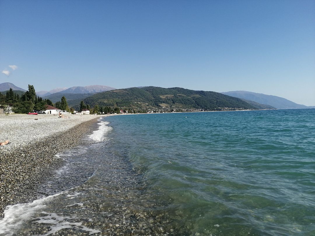 Поездом или самолетом – до г. Сочи (Адлер), далее на общественном транспорте или на такси до «Казачьего рынка» (8 км от ж/д вокзала, 15 км от аэропорта), затем пройти пешком около 500 м до пограничного поста на р. Псоу до границы России и Абхазии. После самостоятельного прохождения паспортного и таможенного контроля до места отдыха можно доехать на автобусе, маршрутном такси или воспользоваться услугами частных водителей.
