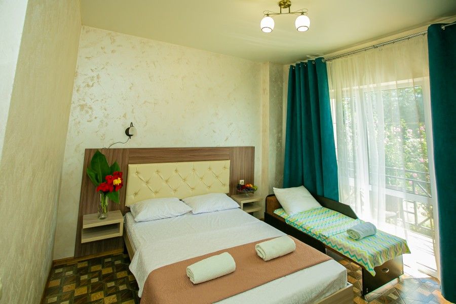 Отель Eco Life расположен в уникальной природной зоне. С одной стороны - море, с другой - горы и река. Неподалеку находится граница с РФ, до аэропорта Сочи - 20 км. В пешей доступности - продовольственные магазины, аптека, рынок, кафе, бары. До аквапарка в Гагре - 16 км или 20 минут на автомобиле. До парка Славы с детской площадкай - 3 минуты пешком.