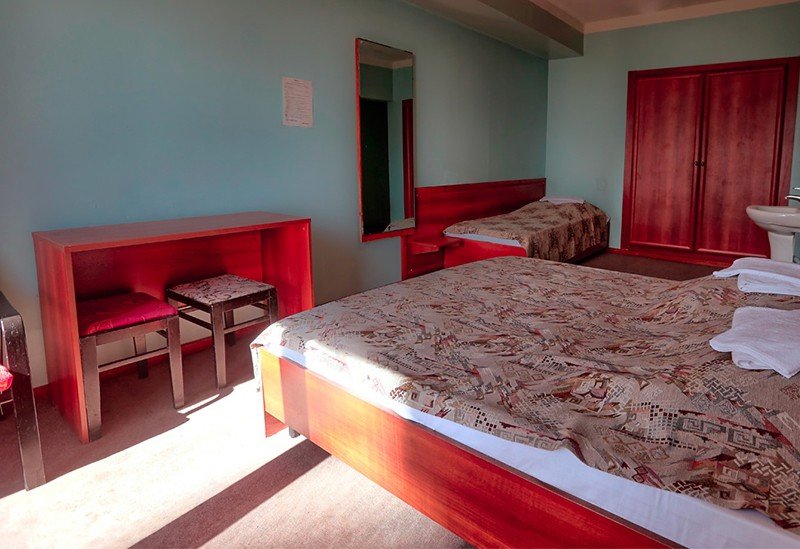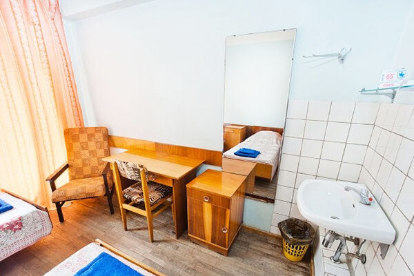 **уровень номеров - эконом класс; без ремонта; душ и туалет - на этаже; телевизор и холодильник - в холле**В гостиничном номере