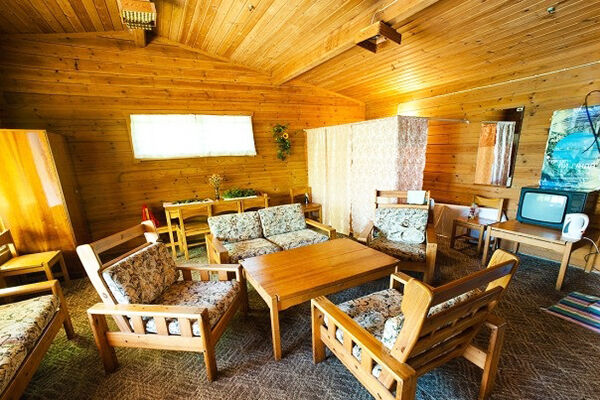 В туристическом комплексе рады семейным парам с детьми: ребят принимают без ограничения по возрасту. С юными гостями занимаются аниматоры, набор игр ждет в детской комнате, а для баловства на открытом воздухе есть игровая площадка.