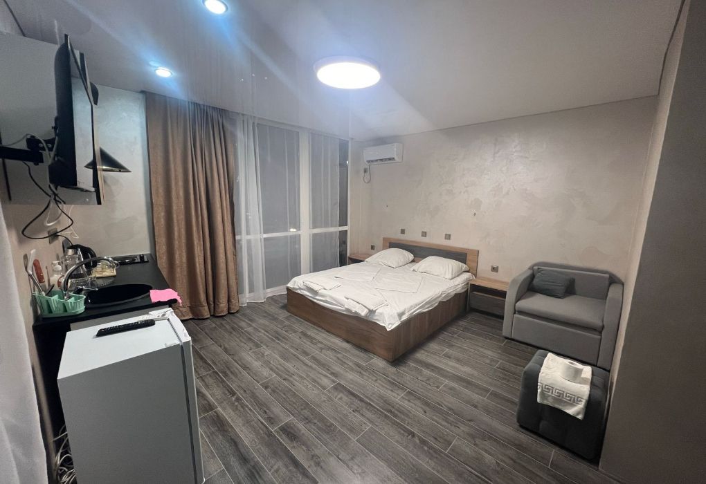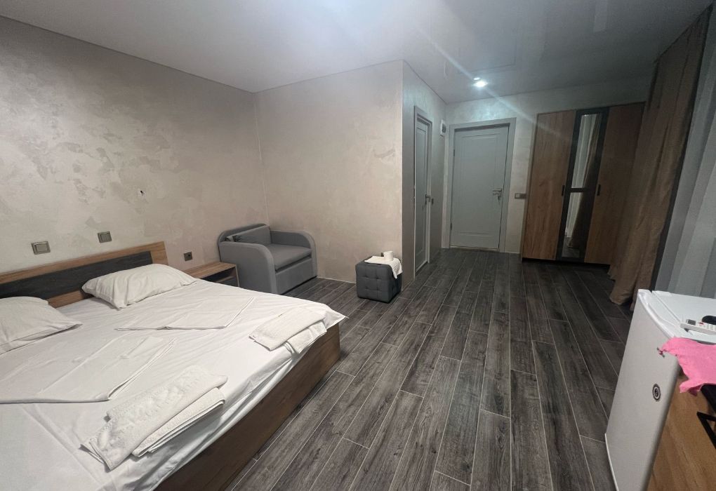 Отель расположен в центре города Пицунда и представляет собой трёхэтажное здание. В шаговой доступности от отеля находится всё, что нужно для отдыха: магазины, кафе, столовая, отделение банка с банкоматами, продажа местных сим-карт, музей и рынок, а также Пицундский храм. Это делает отель привлекательным местом для проживания и позволяет гостям насладиться всеми преимуществами развитой инфраструктуры развлечений на побережье Абхазии. **ВНИМАНИЕ! Ресепшен отеля работает на прием гостей до 19:00, в случае позднего заезда следует получить инструкцию по входу в отель**