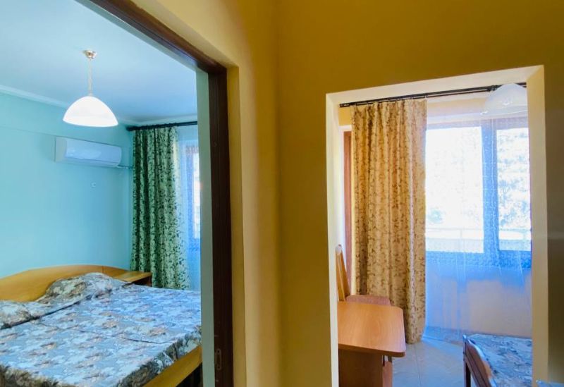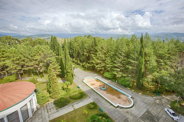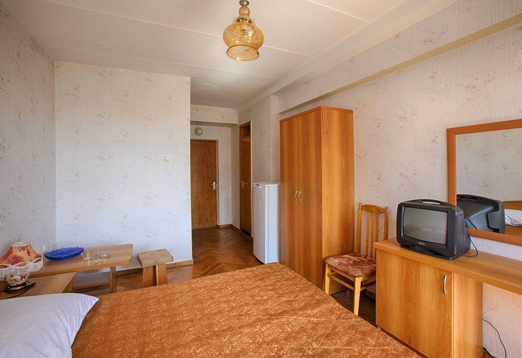 Главный 8-этажный корпус отеля был построен в 1970-м году и реконструирован в 2007-м. Находится он на охраняемой благоустроенной территории. Для гостей приготовлены номера категорий «эконом» и «стандарт» с разным количеством мест. В комнатах просторно, светло и уютно. С балконов открывается живописный вид окрестностей.