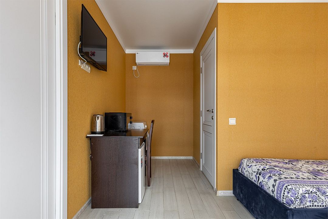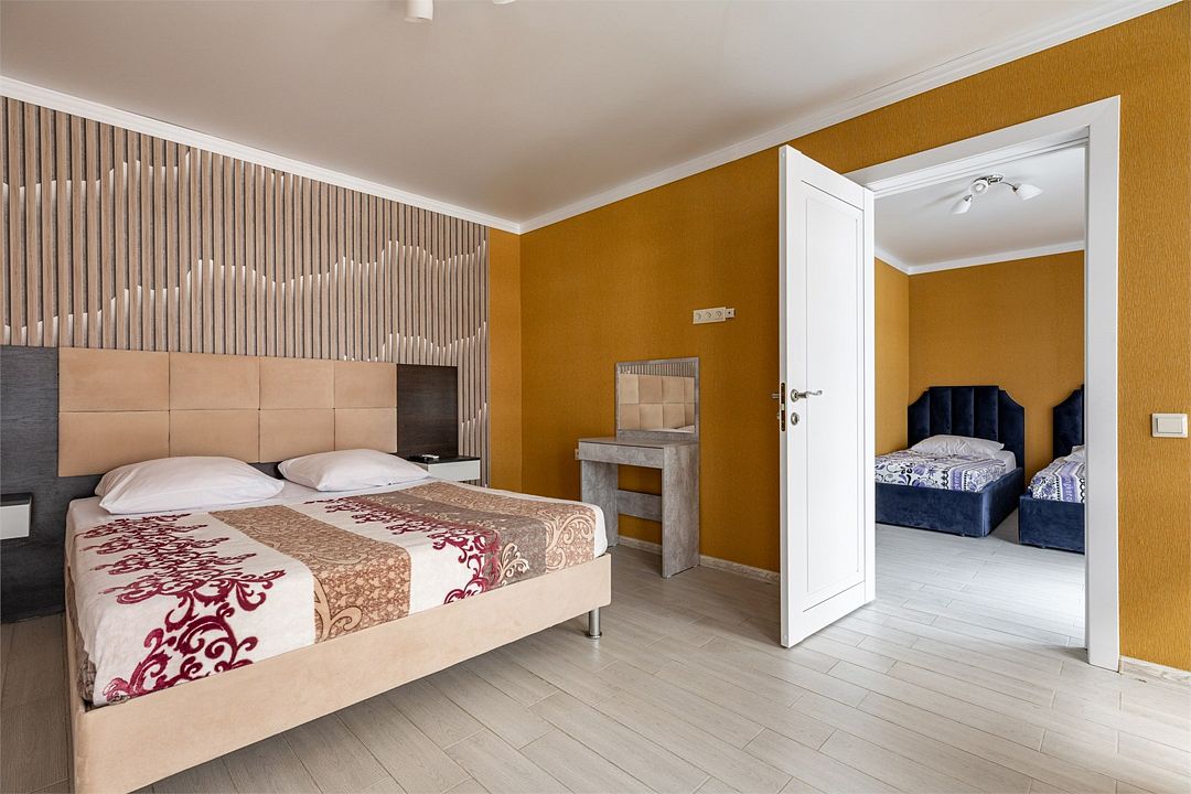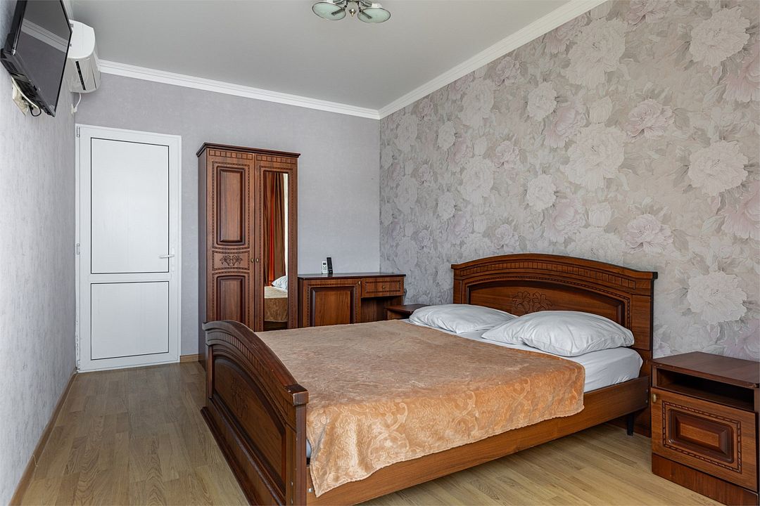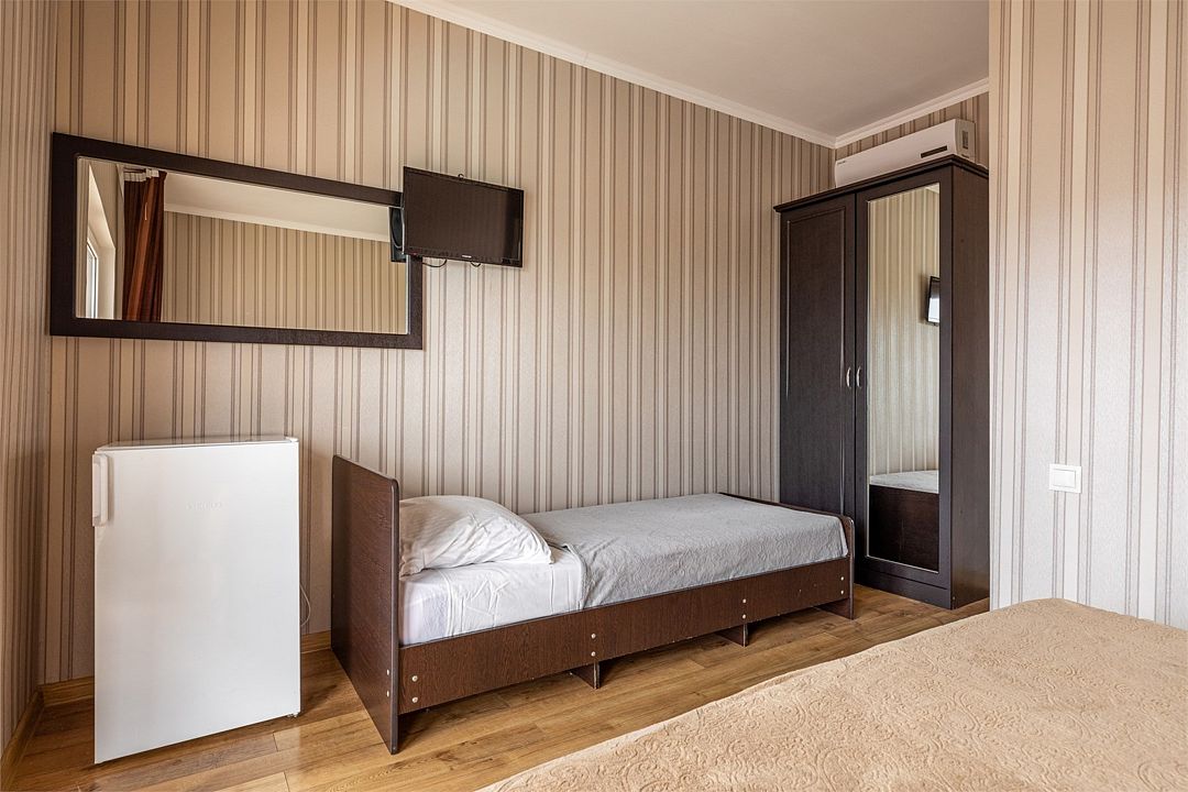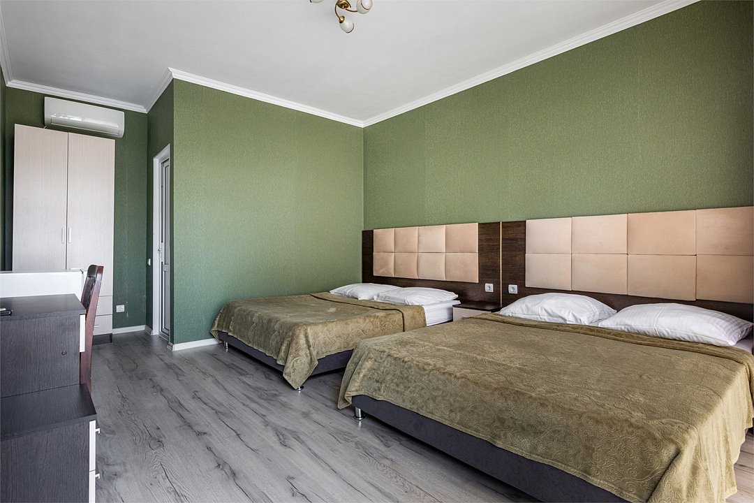 В номере: одна двуспальная кровать и одна односпальная кровать, прикроватные тумбы, шкаф, стол, холодильник, санузел, душ, кондиционер, Wi-Fi, телевизор.Услуги и удобства