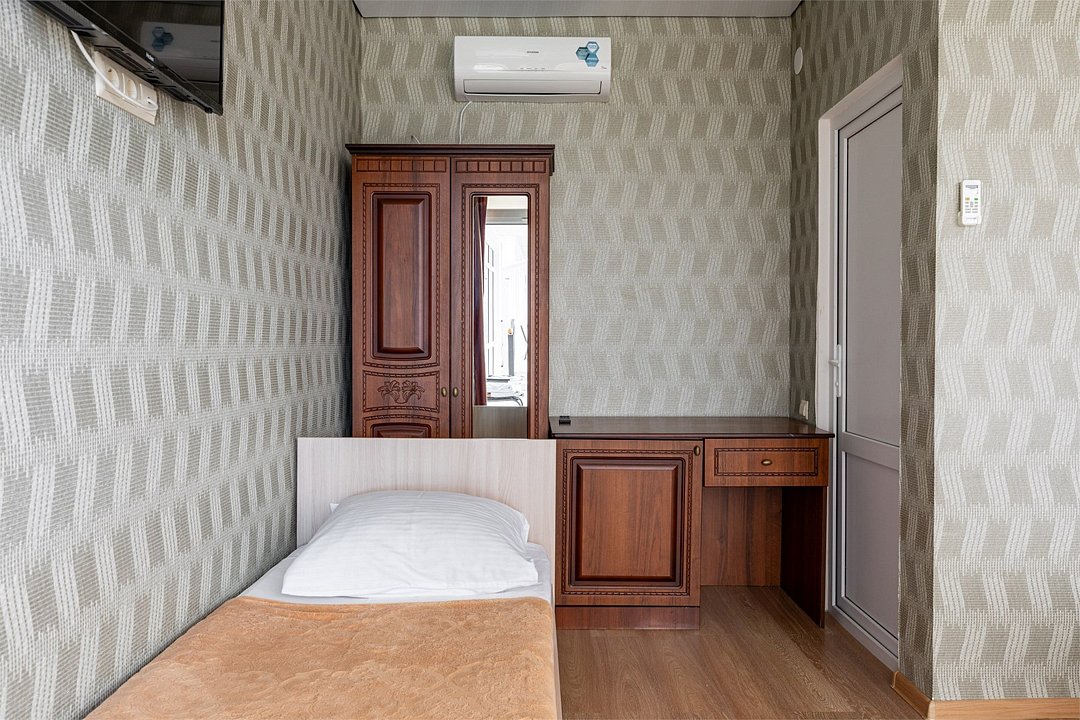 16 кв.м. В номере: 1 двуспальная кровать, шкаф, тумбочка, телевизор, кондиционер, стул, холодильник. Санузел с душем. Номера без балкона. Доп. место не предусмотреноУслуги и удобства