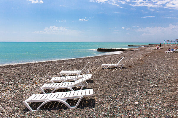 Ближайший к пансионату пляж – в 50 метрах. Спортивный и пляжный инвентарь можно взять напрокат по соседству. Пляж оборудован лежаками, зонтами и шезлонгами. На берегу – и песок, и галька.