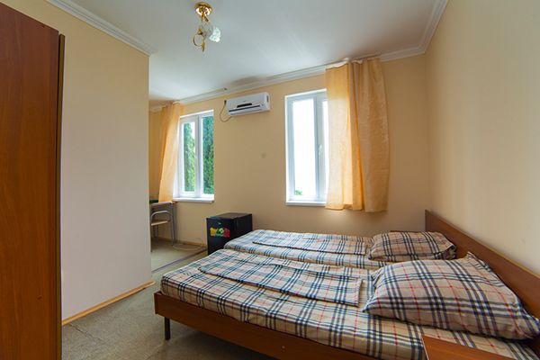 В светлом здании, окруженном пышными деревьями, три этажа. Из окон открывается чудесный вид на Черное море. Рядом находится пляж Белые скалы – одно из чудес Абхазии. Территория «Репруа» огорожена: здесь созданы все условия для спокойного и безопасного семейного отдыха. С мая по октябрь гостей ждут номера категории «стандарт»: комфортные, чистые, уютные, с удобной мебелью и набором необходимой бытовой техники.