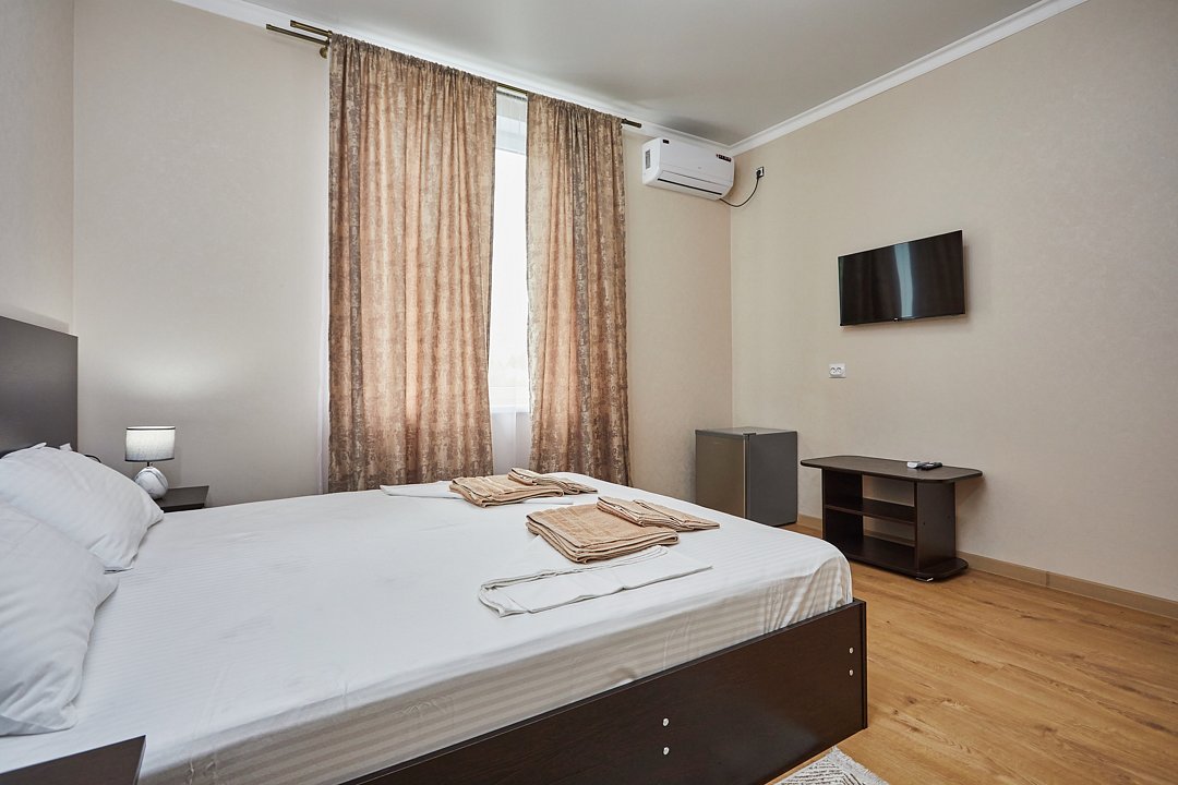 На выбор доступно 17 просторных номеров с удобными двуспальными кроватями для хорошего сна, каждый из которых оснащён кондиционером для поддержания комфортной температуры, независимо от погоды. Даже в самые жаркие летние дни вы сможете наслаждаться прохладой! Также в номерах предусмотрены ванные комнаты с душем, где можно расслабиться и освежиться в любое время. Есть горячая вода.
