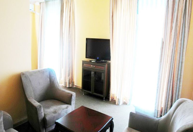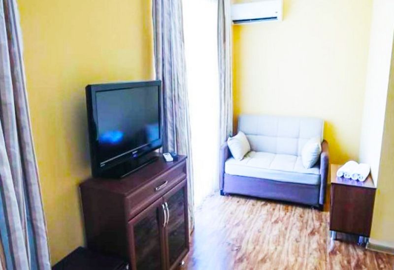 К услугам отдыхающих – парковка личных автомобилей, салон красоты, экскурсионное бюро. Для детей на заднем дворе обустроена площадка с качелями.