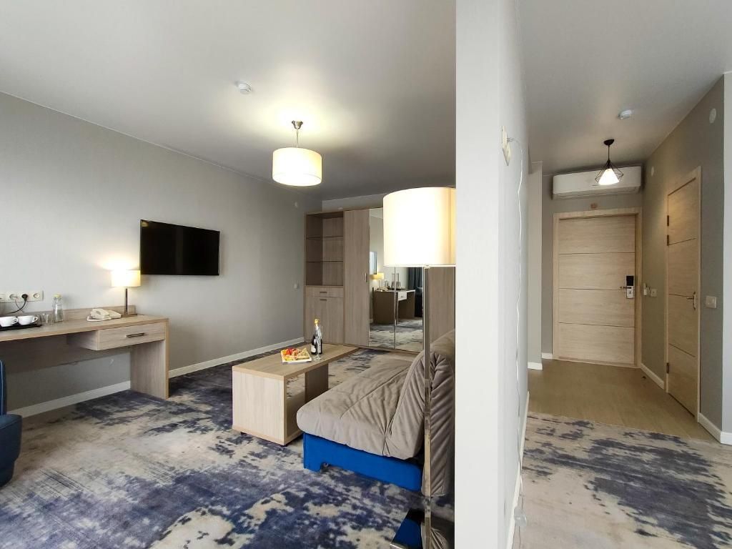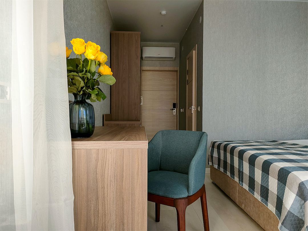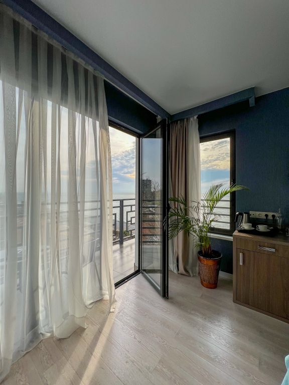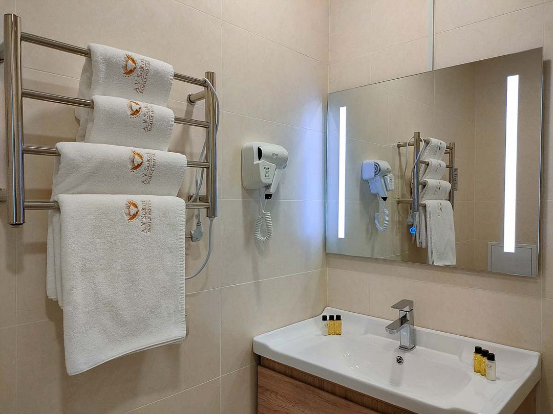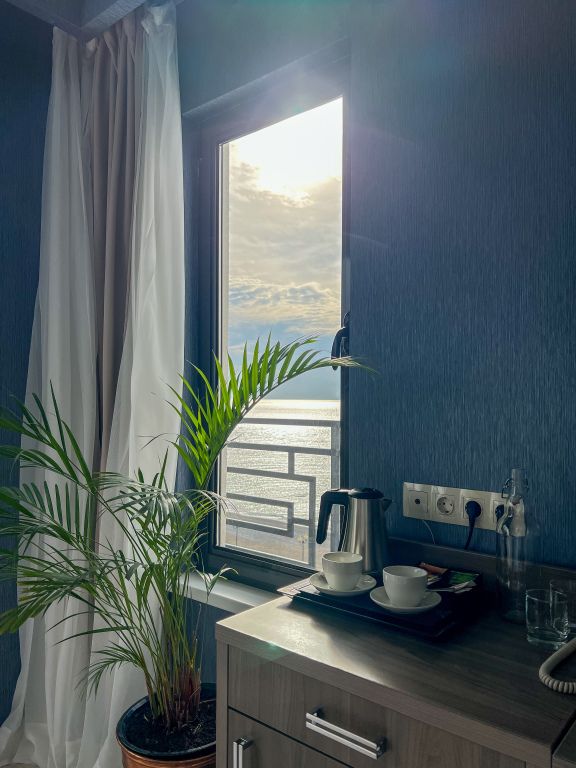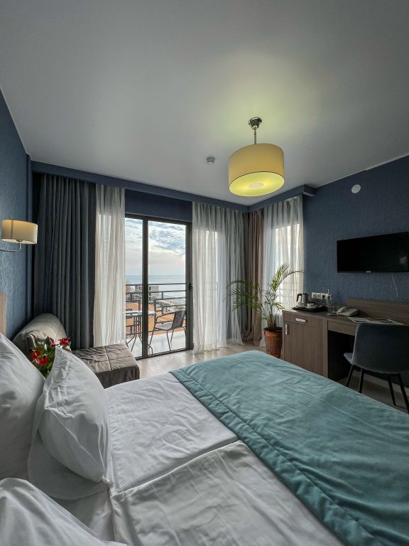 Путешествие в одиночкуA.V.Sokol рекомендую!Была в деловой поездке в конце ноября 2024г, решила остановиться в этом отеле на 3 дня. Не смотря на дождливую погоду в номере тепло, уютно, есть все необходимое (полотенце, тапочки, халат, фен, косметические наборы), что существенно сокращает багаж). Также в номере телевизор, кондиционер, чайная станция. Уборка в номере каждый день, и вообще на всей территории отеля очень чисто. Завтрак отличный, разнообразный и вкусный, по ассортименту не уступает заграничным 5*. Вид с балкона шикарный, мне достался номер 605 с видом и на горы и на море! Территория отеля не большая, но очень красивая, ухоженная, много разных зон отдыха, чистый открытый бассейн с подогревом!). Не смотря на то, что периодически в городе бывают проблемы с электричеством, в отеле это не ощущается, т. к. есть генератор. И ещё большим плюсом то, что территория охраняется и контролируется. Хорошее расположение на первой береговой линии, можно вечером прогуляться по набережной, большой выбор кафе, ресторанов в шаговой доступности, не далеко Центральный рынок. По цене очень демократично, мне предложили не дороже, чем другие отели. Однозначно рекомендую как для деловых поездок, так и для отдыха!