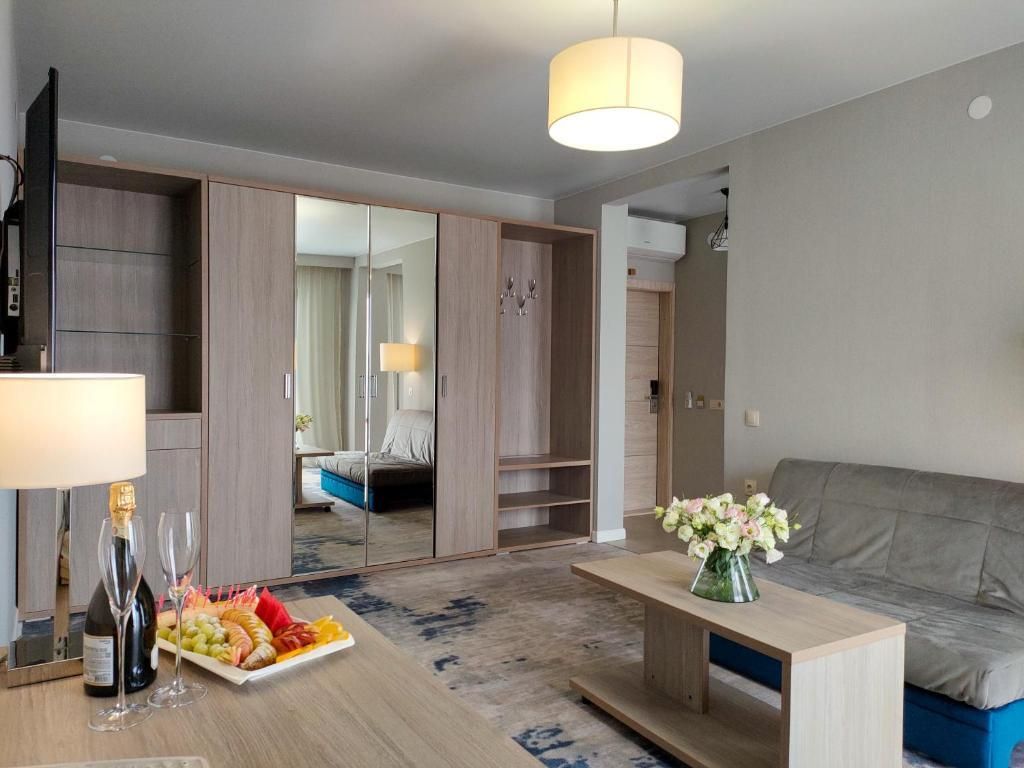 В шаговой доступности аквапарк, супермаркеты, колесо обозрения, множество столовых, кафе, ресторанов. В получасе езды находится российско-абхазская граница, а до международного аэропорта в Адлере — 40 километров. Городской пляж расположен всего в 30 метрах от отеля. Пляж покрыт галькой, оснащен раздевалками, навесами, также работает пункт проката лежаков и шезлонгов.