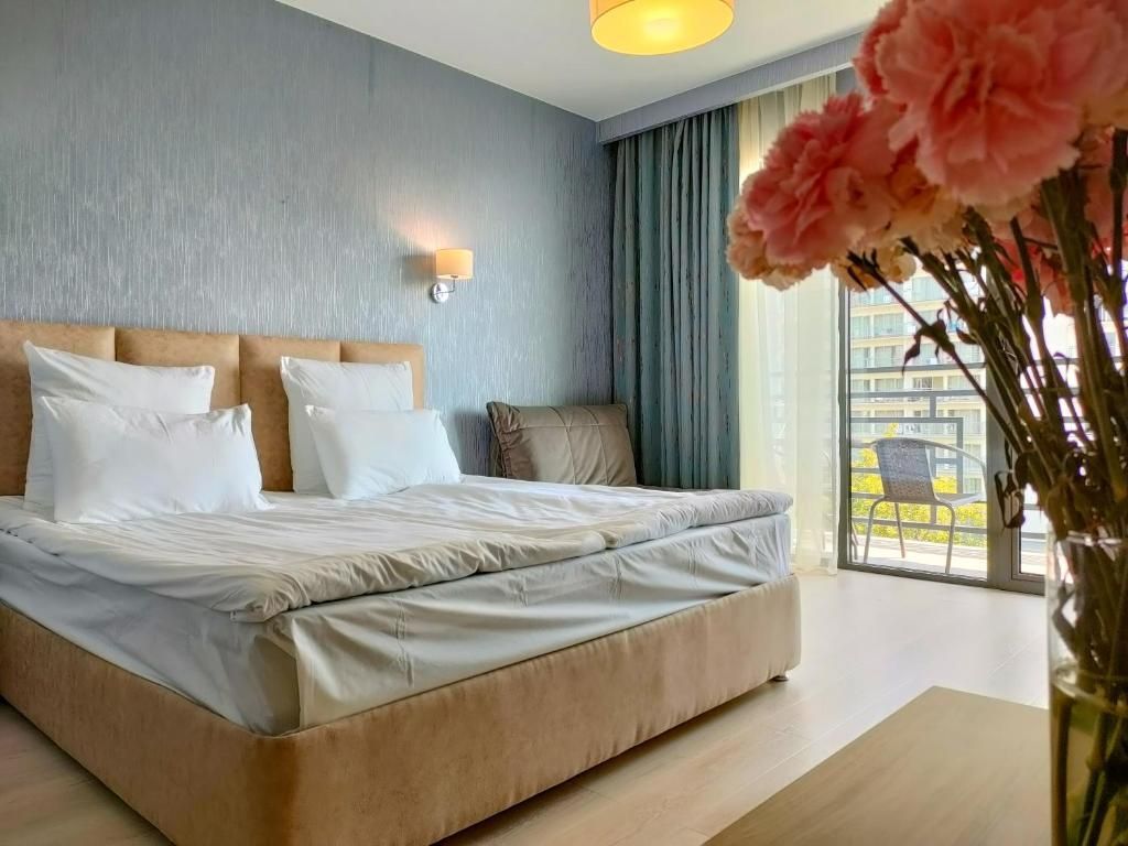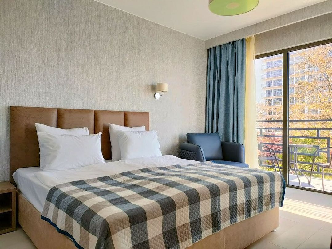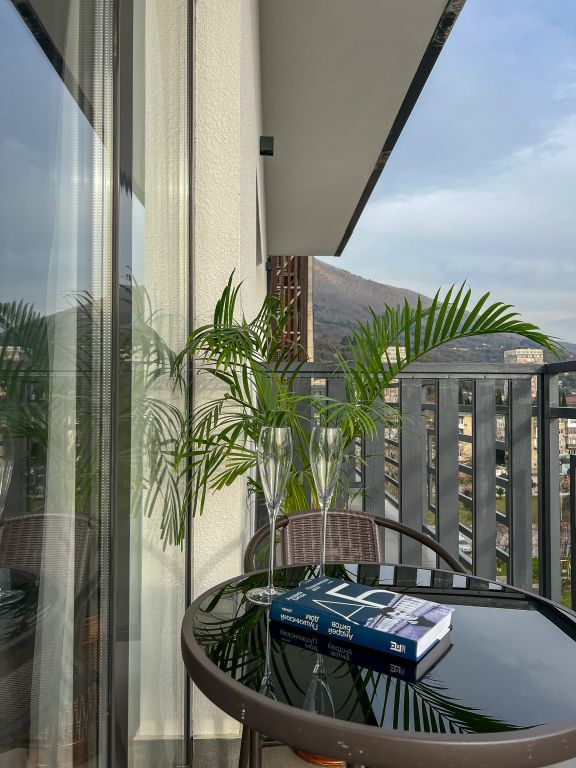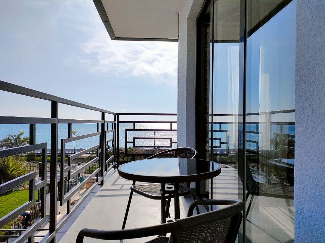 От аэропорта мы ехали на трансфере, границу прошли быстро. Приехали, нас сразу заселили. Мы жили на 4 этаже, вид из окна шикарный, с видом на горы и на море.