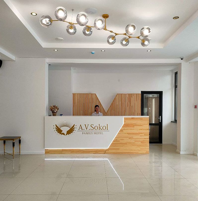 Семейный отель «А.В. Сокол» расположен в центре Новой Гагры прямо у роскошного пляжа на центральной набережной. Семиэтажное здание отеля разместилось на первой береговой линии. Жилой фонд, способный единовременно принять более 150 человек, предлагает гостям двухместные номера в классическом и современном стилях, оборудованных всем необходимым для непревзойденного удобства гостей. В комнатах — панорамные окна с видом на море или горы, а также в некоторых номерах предусмотрены открытые террасы. В каждом номере установлены кондиционеры, есть индивидуальный санузел с душем, плазменный телевизор, интернет.