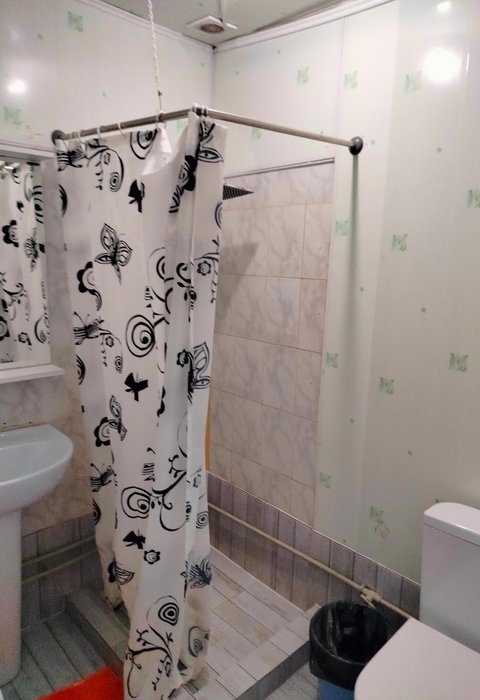 Санузел, душ, телевизор, холодильник, кондиционер, без дверей между комнатами.