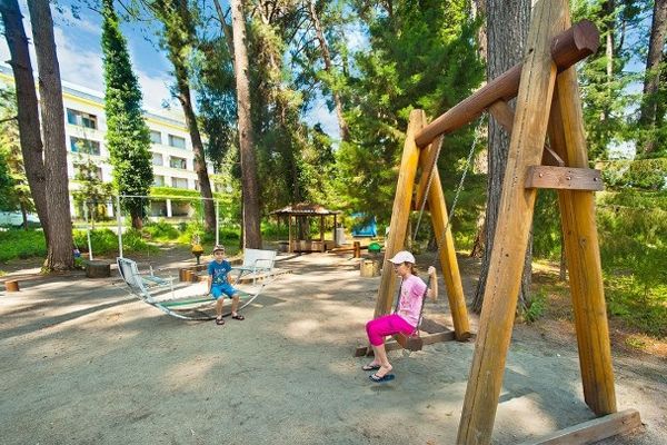 Для юных гостей пансионата «Сосновая роща» в Пицунде оборудована детская игровая площадка на свежем воздухе, организованы анимационные программы.