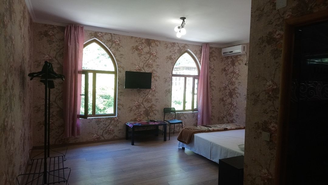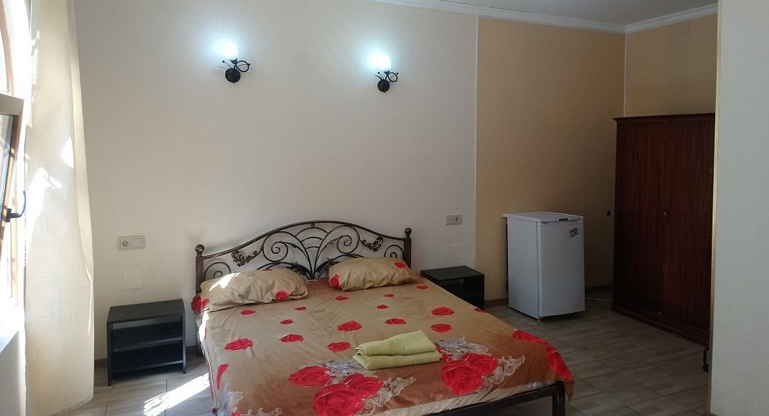 Гостевой дом представлен одним 3-этажным зданием на 6 номеров категорий комфорт и студия. В каждом номере отдельная ванная комната с душем, кондиционер, телевизор, чайник, холодильник. В студиях оборудована мини-кухня с бытовой техникой.