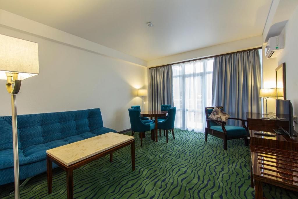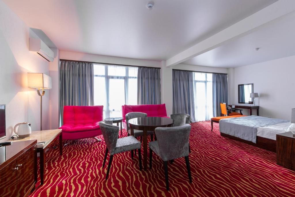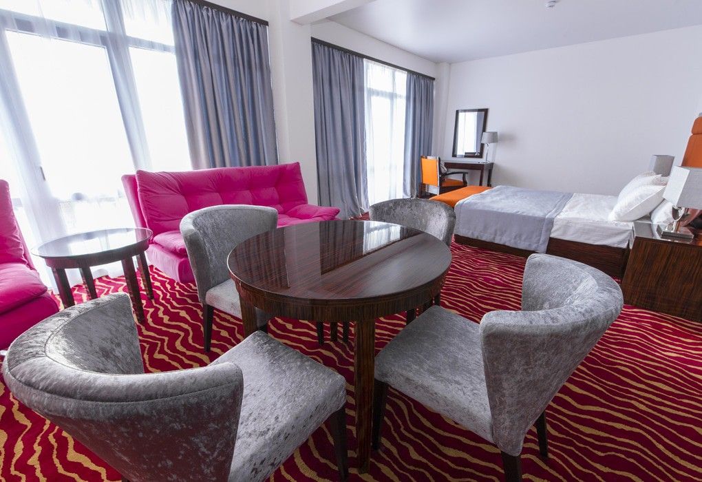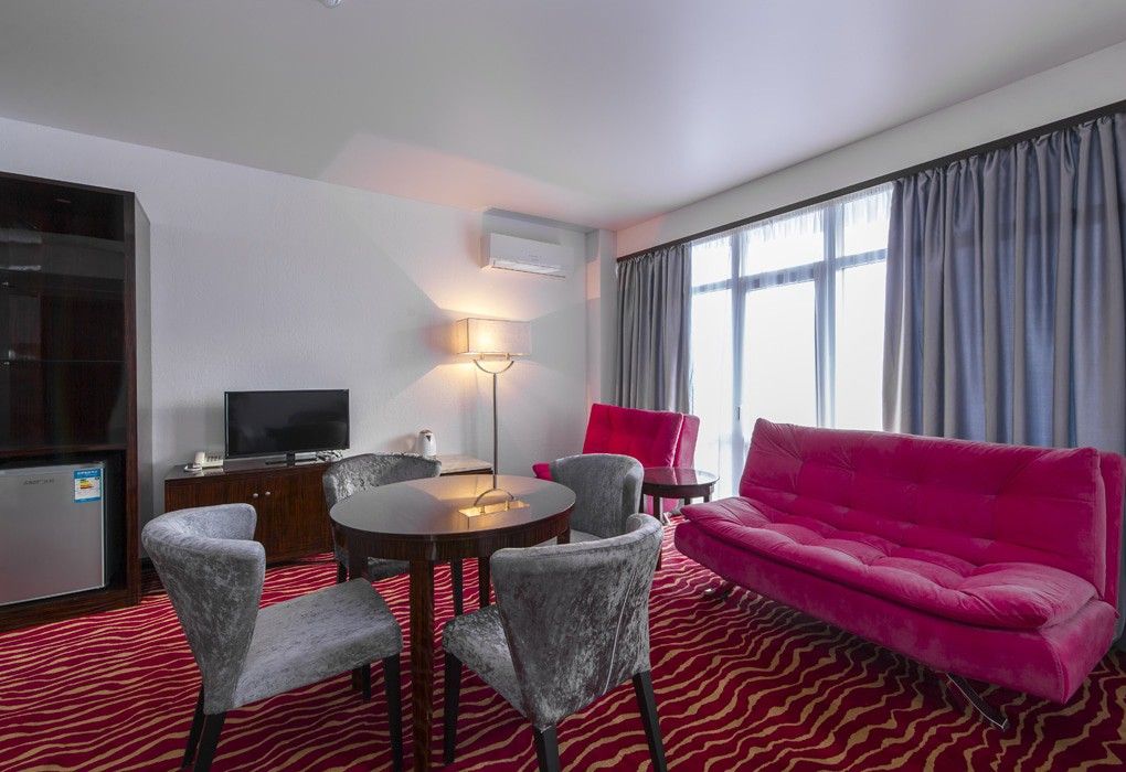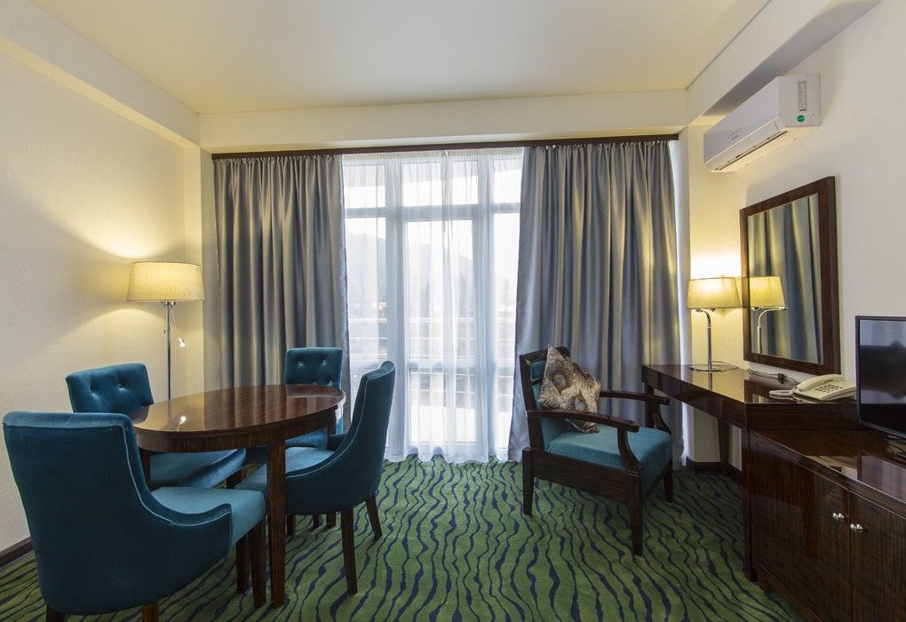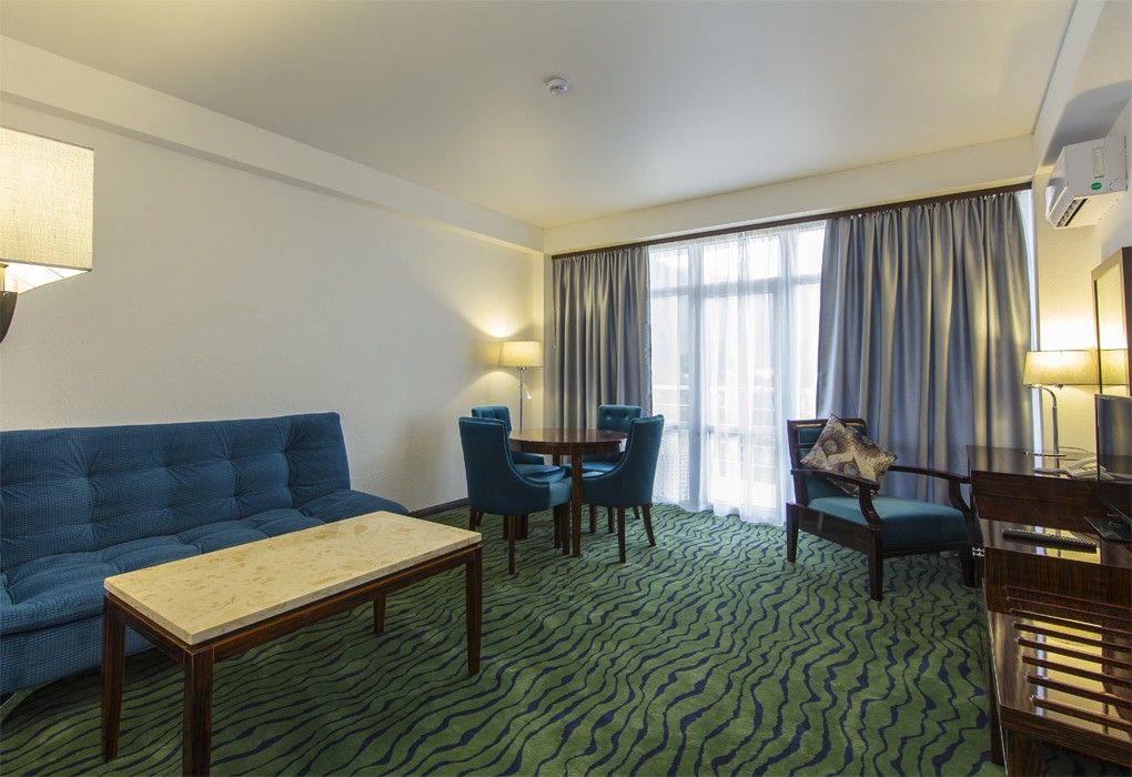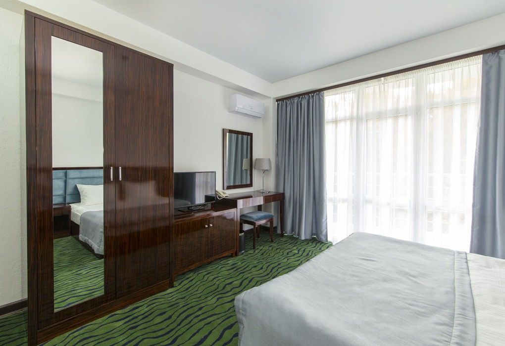 В номерном фонде “Sunrise Garden Hotel” (Гагра) – стандартные 2-местные номера с балконами и без, а также номера повышенной комфортности и один De luxe на 6 этаже с панорамным балконом и видом на бассейн. Во всех номерах – удобная мебель, рабочий стол с дополнительным освещением, мягкий ковролин, индивидуальная система климат-контроля, телевизор с плоским экраном и кабельными каналами, телефон, сейф, wi-fi, а также собственная ванная комната с ванной или душем, феном и туалетно-косметическими принадлежностями. Из номеров открываются великолепные виды на морские просторы и горные ландшафты южного побережья, вид на городской Комсомольский парк.