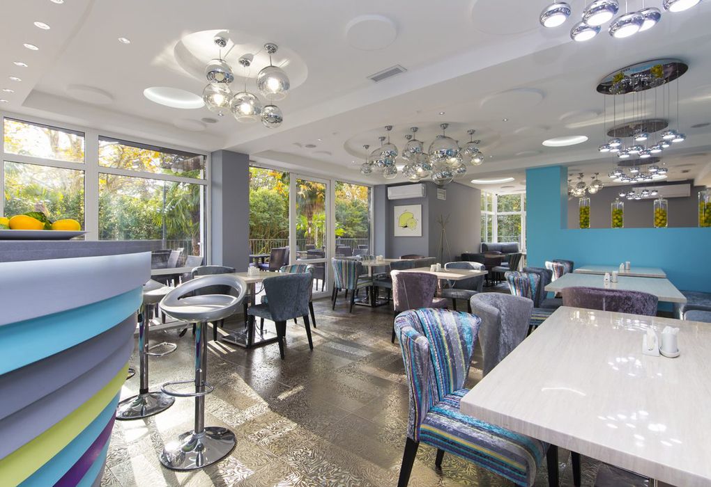 На первом этаже отеля в зоне лобби расположен уютный бар, в котором гости получат освежающий приветственный коктейль при заезде и найдут широкий выбор бодрящего чая, ароматного кофе, алкогольных напитков, легких закусок и десертов в любое время дня