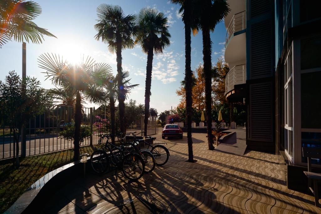 Территория отеля небольшая, но уютная. Возле отеля есть небольшой бассейн (для любителей такого рода отдыха на море) и лежаки с зонтами. В отеле можно взять напрокат велосипеды (200 руб/час) по цене в 2 раза ниже городских. Правда, они требуют обслуживания.