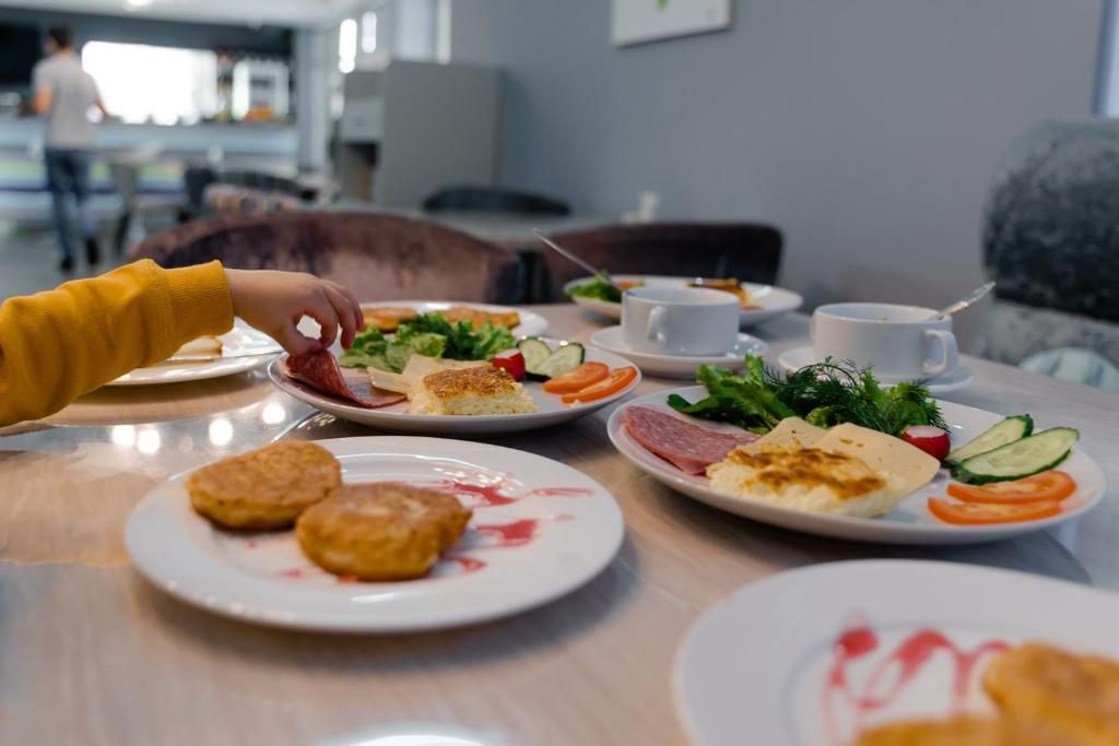 Обед и ужин можно заказать в отеле за отдельную плату. Мы так и сделали, заказав обед по прибытии. Очень вкусно, но цена за 2 первых блюда и салата показалась не кошерно высокой. К тому же взяли 10% стоимости за обслуживание. Поэтому на ужины и однажды на обед ходили в основном в чайхону «Абаата» (не путать с одноименным рестораном). Потрясающее заведение по сервису, ценам, обслуживанию и кухне, расположенное неподалеку через реку! Очень советовали бы хачапур по-аджарски (лодочка с яйцом) - понимаем в них толк и кирамит с телятиной (при подаче этого эффектного блюда на стол приготовьте фотоаппараты).