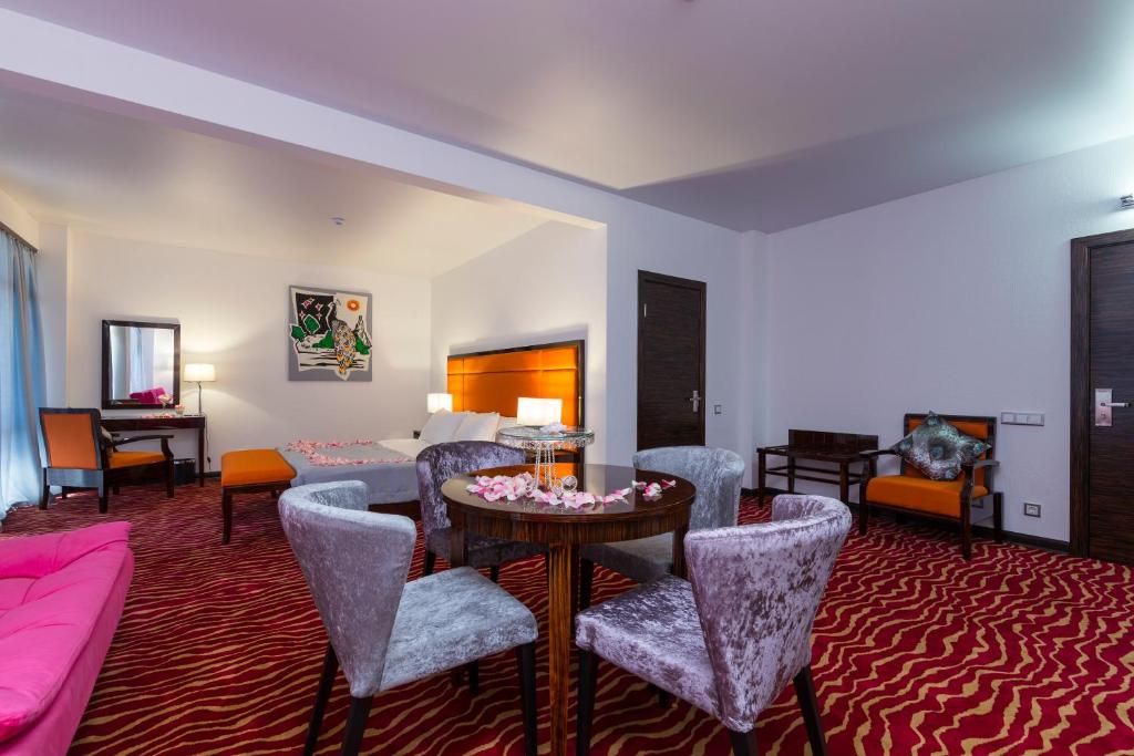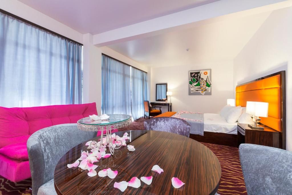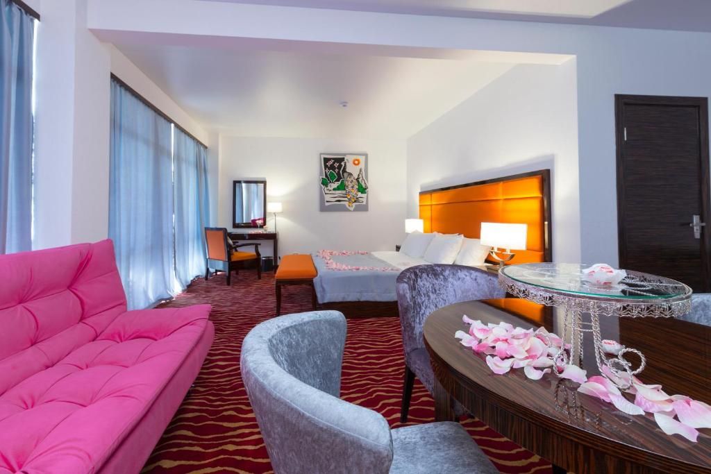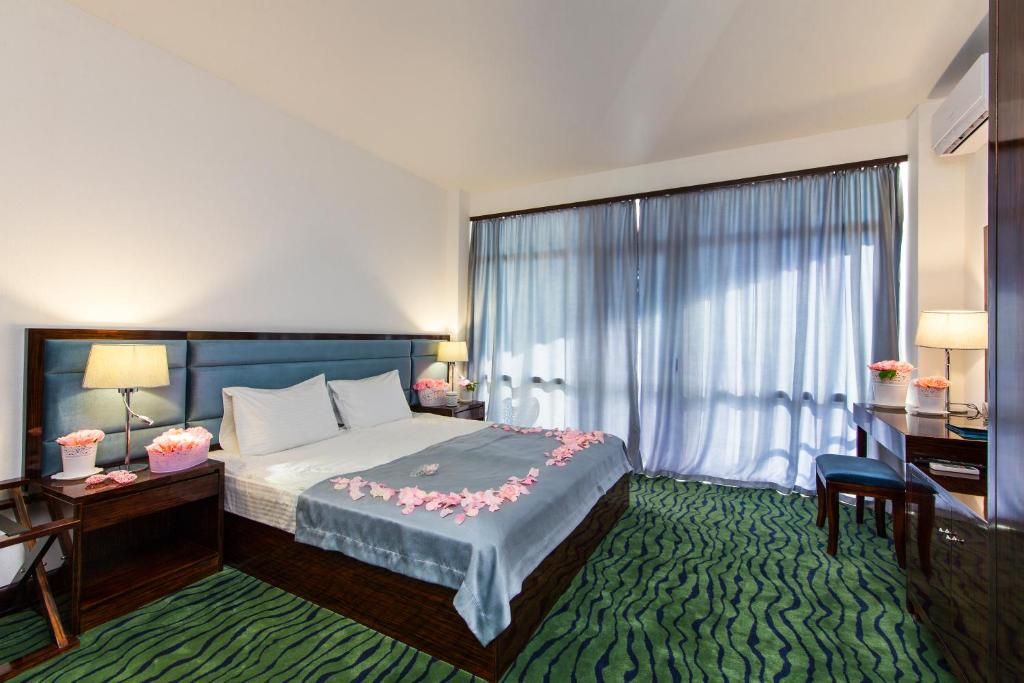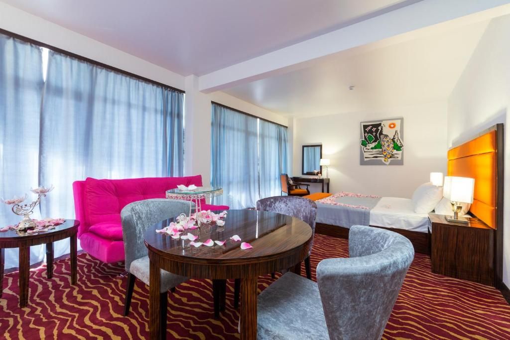 Трехзвездочный отель «Санрайз Гарден» в Абхазии 3* – украшение туристической Гагры. Это здание построено в 2016-м году посреди роскошного парка рядом с морским берегом. Солнечный уголок курорта, который занимает отель, прекрасен сам по себе, но оправой к этой жемчужине служат местные достопримечательности. Рядом с отелем “Sunrise Garden Hotel” (Гагра) – легендарные туристические объекты: древняя крепость Абаата, Приморский парк Принца Ольденбургского, Жоэкварское ущелье, обзорный пирс, Колоннада. Отпраздновать знакомство с великолепной Старой Гагрой приезжие могут в знаменитом ресторане «Гагрипш»: он тоже недалеко.