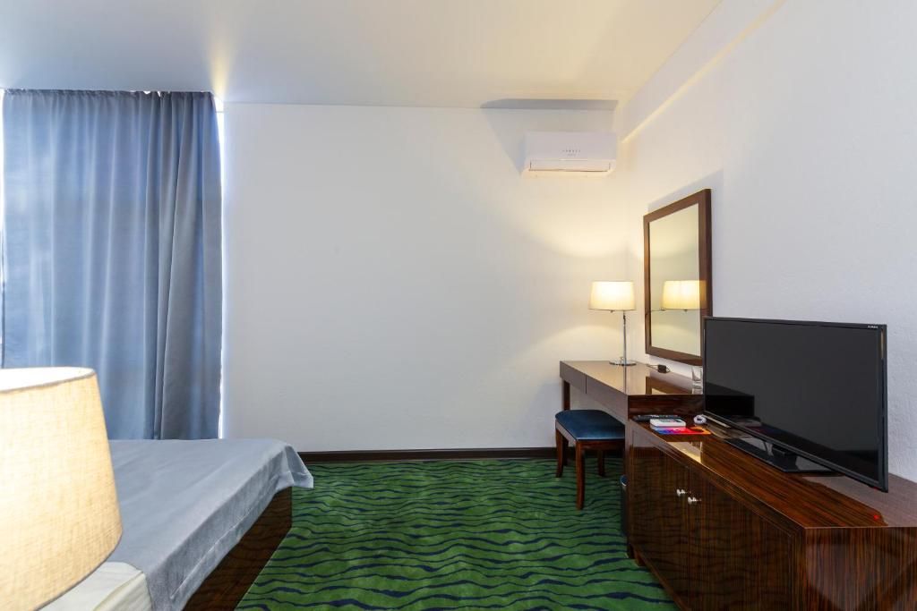 НедостаткиНедостатки. А как же без них. В номере красивый, но не очень удобный и функциональный шкаф. В нем много места, чтобы повесить одежду, но полочек, чтобы что то разложить - практически нет. Телевизор, по отношению к кровати, расположен для просмотра крайне неудобно (пусть даже ТВ смотрели только поздним вечером, практически перед сном) - сбоку. Если учесть, что в номере стандарт без балкона нет стульев (только банкетка) - весьма непонятное решение. Смотреть его сидя на кровати, не прислонив к чему либо спину - неудобно. Только лежа боком. Не понимаю, почему его не подвесили на кронштейн на стену напротив кровати?...