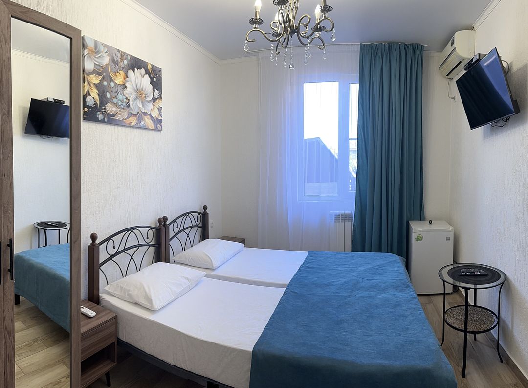 Четырехэтажный корпус отеля (без лифта) возвышается на закрытой охраняемой территории. Гостей ожидают 18 номеров категории Стандарт, рассчитанных на 2-х и 3-х местное размещение. В номерах есть необходимая мебель, собственный санузел с душем и бытовая техника — кондиционер, телевизор, холодильник. В некоторых комнатах предусмотрен балкон.