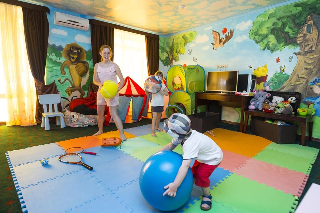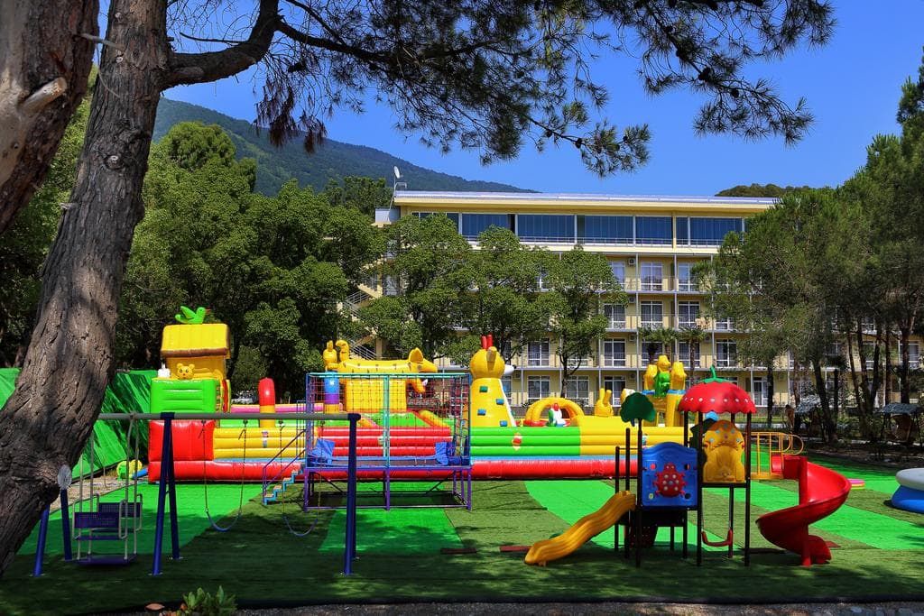 Для полноценного разнообразного отдыха открыт бассейн, проводятся анимационные программы, в том числе детские. Для ребятишек работает игровая комната с воспитателем, своя площадка, а для совсем маленьких родители могут взять напрокат кроватку – в этот райский уголок семьями с детьми можно приезжать без всяких возрастных ограничений.