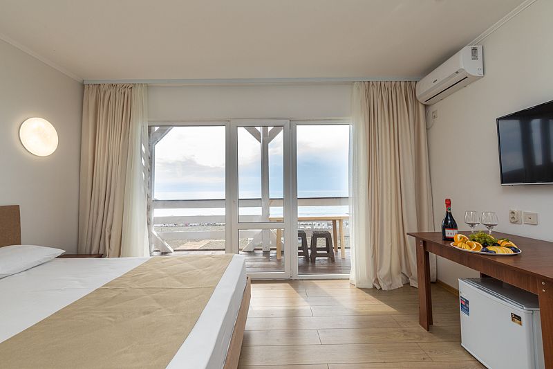Хороший номер с частичным видом на море и сосныНедостаткиМинусы: