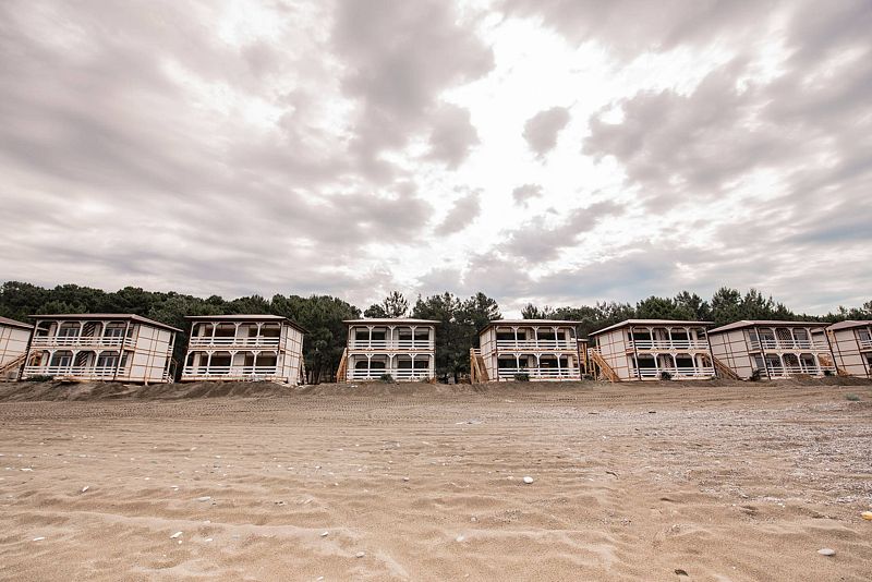 Отель «Золотые пески» расположен в 15 минутах езды от курорта Пицунда на побережье Чёрного моря в Абхазии. Он был открыт в 2022 году на базе реконструированного дома отдыха «Кудры». Комплекс состоит из трёх корпусов с лифтами и двух коттеджных посёлков на охраняемой парковой территории. Гостям предлагаются номера со всеми удобствами и балконами.