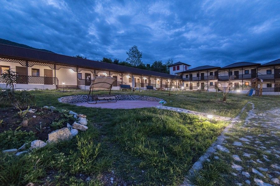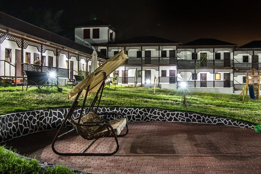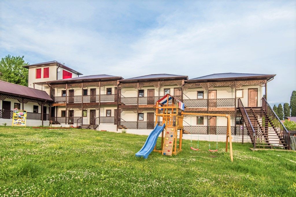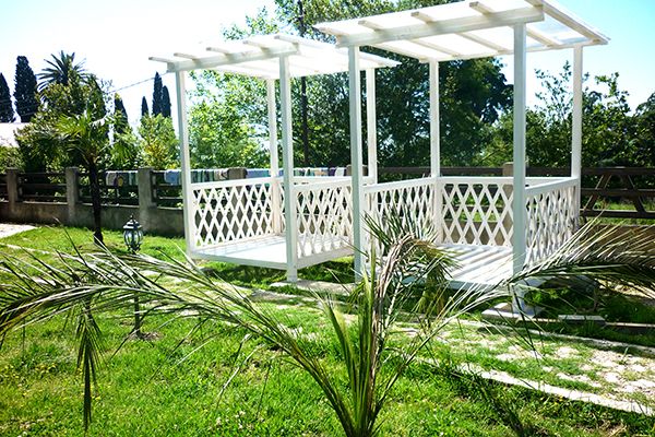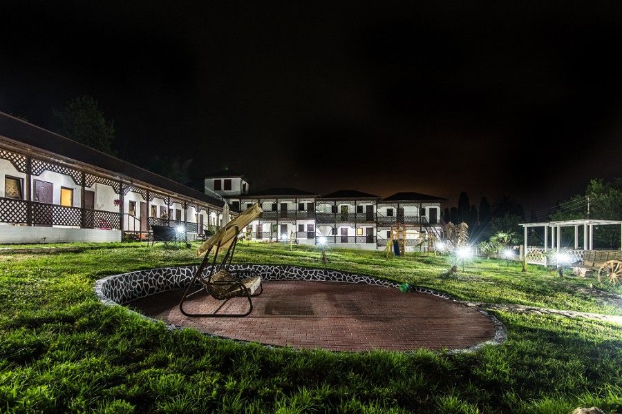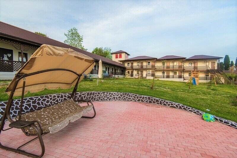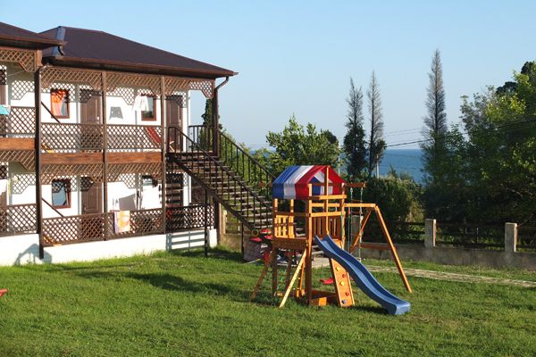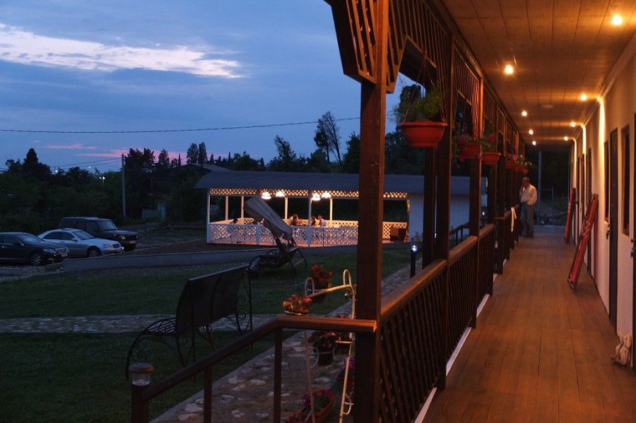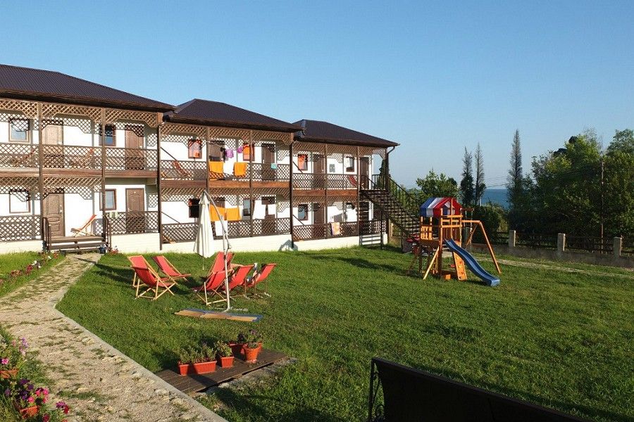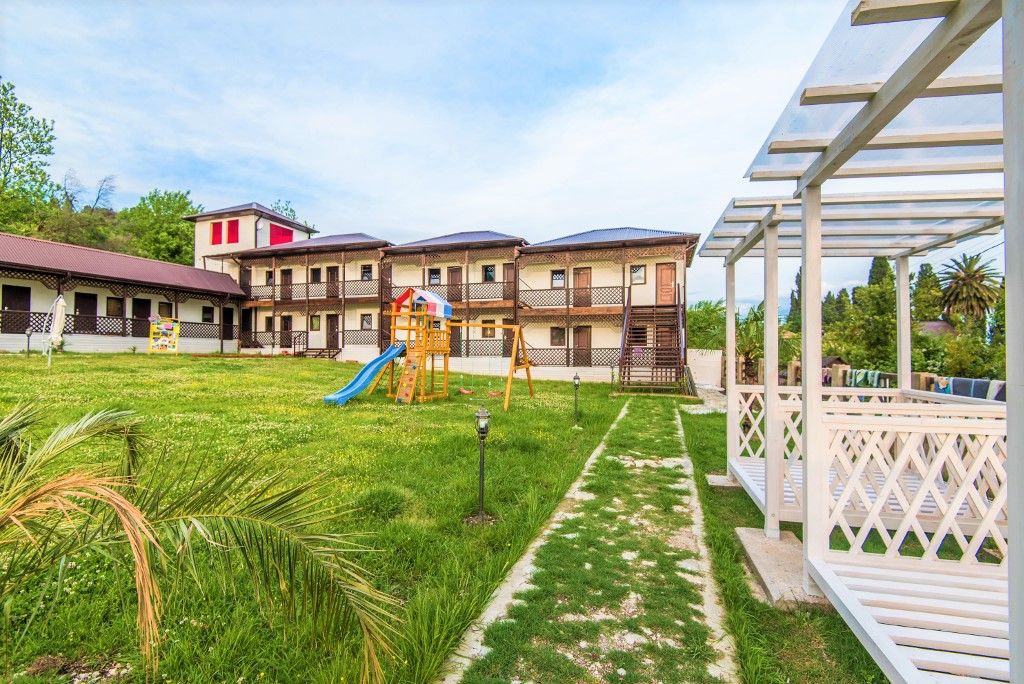Пансионат окружает плетень и привлекательная зеленая территория в стиле аутентичного абхазского подворья. На собственной закрытой территории – настоящий деревенский колорит, поскольку это натуральная сельская местность, питомник в селе Псырцха. При этом на территории есть WI-FI и другие блага цивилизации.