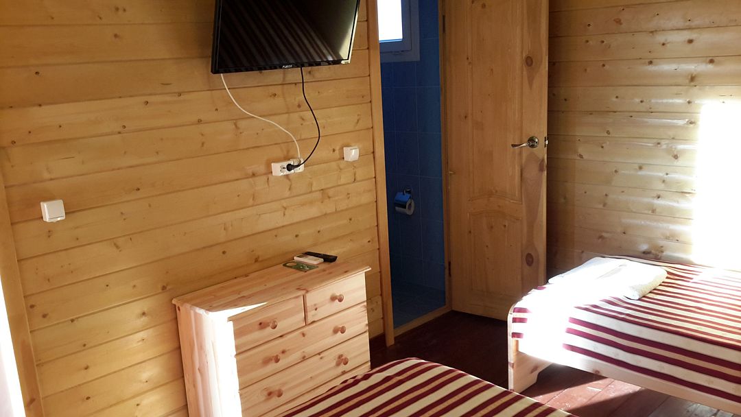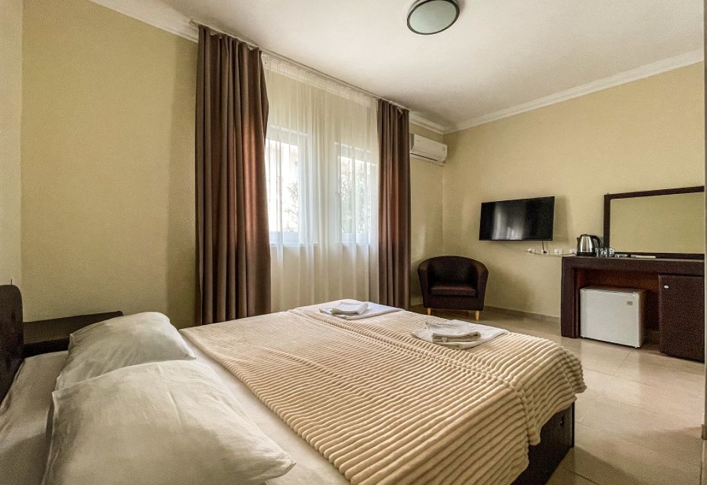 с/у, ТВ, холодильник, кондиционер, балкон,одна двуспальная кровать и одна двухъярусная кровать