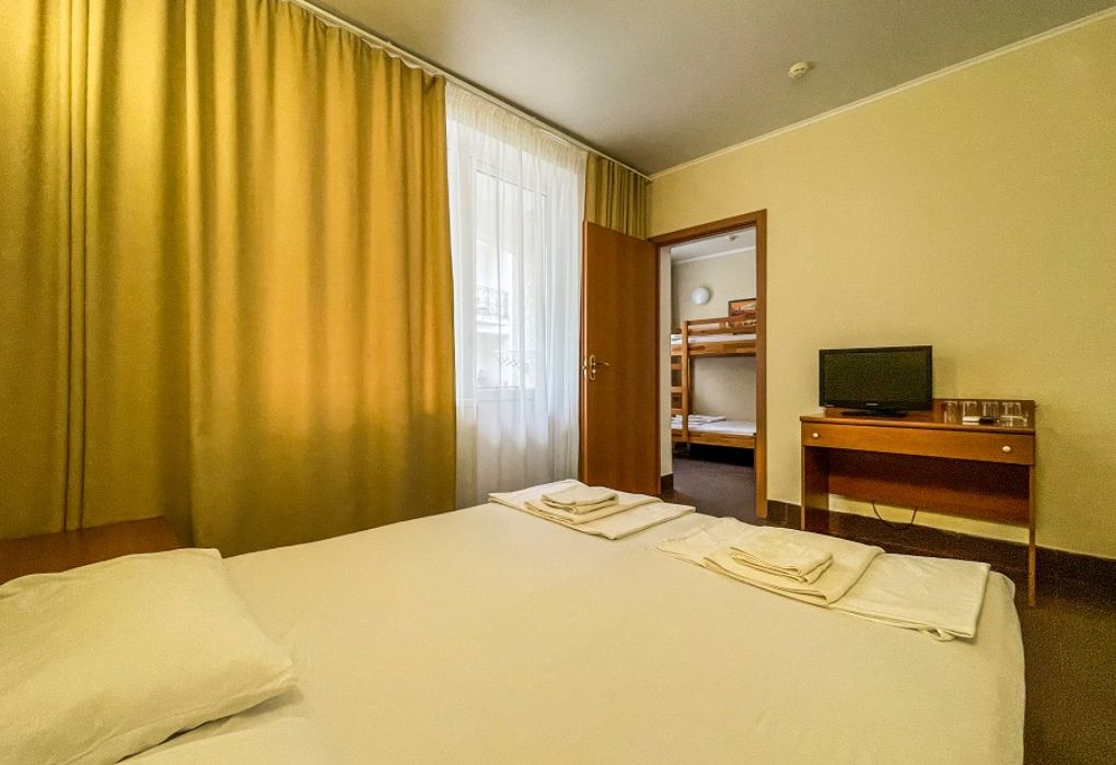 с/у, ТВ, холодильник, кондиционер, балкон, двуспальная кровать, односпальная кровать, двухъярусная кровать