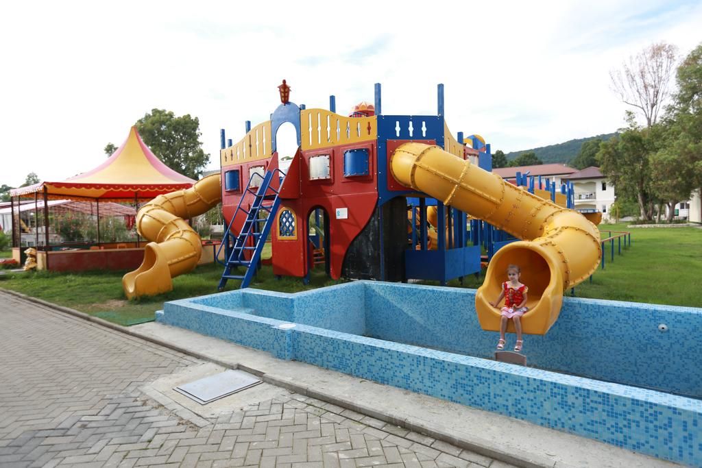 Возраст гостей в отеле не ограничен: родители могут приезжать сюда даже с малышами до года. За дополнительную плату персонал выдает кроватку-манеж, организует услуги няни, а для ребят постарше есть игровая площадка и детский бассейн с горками. В теплое время года детвору развлекают аниматоры.