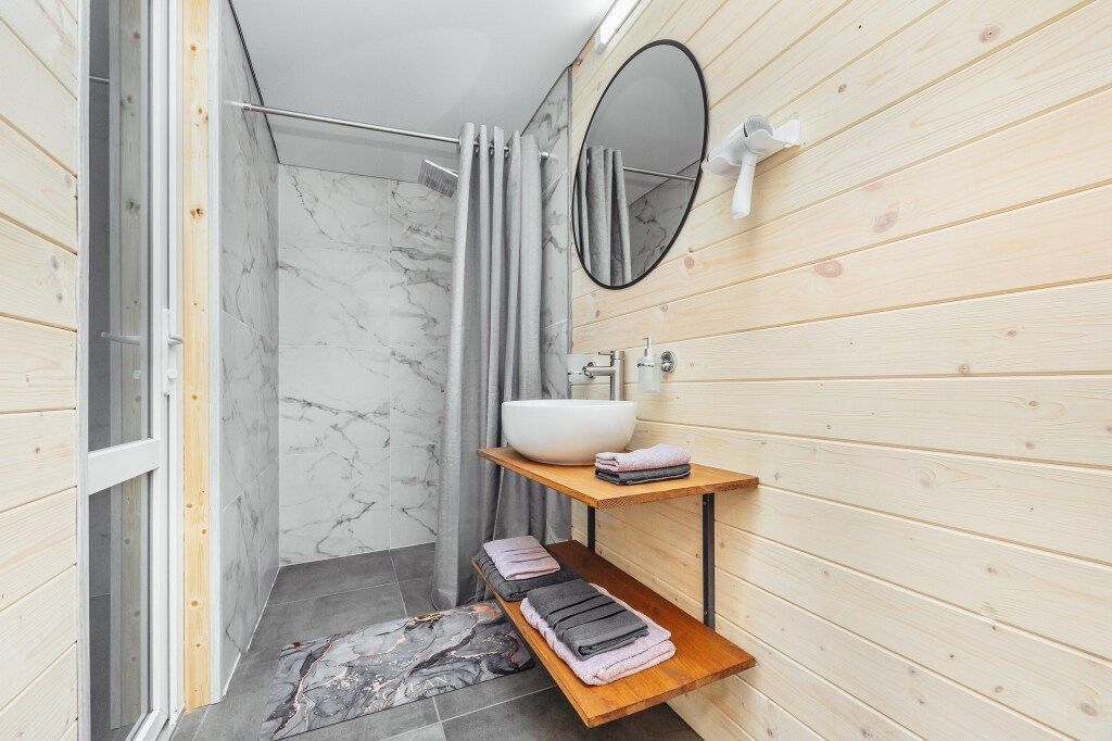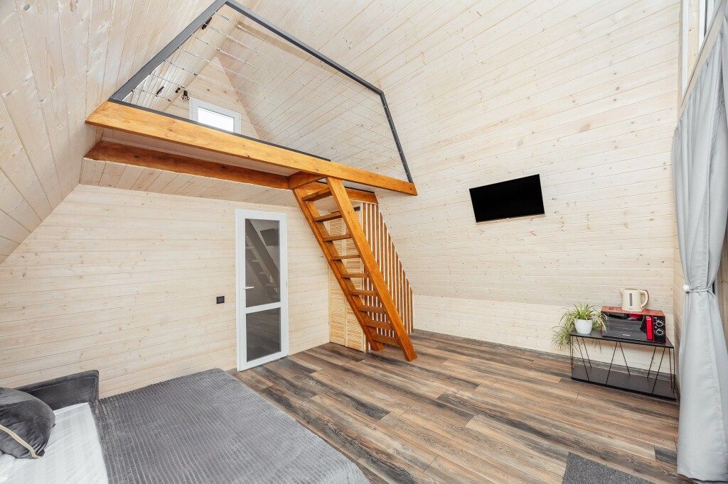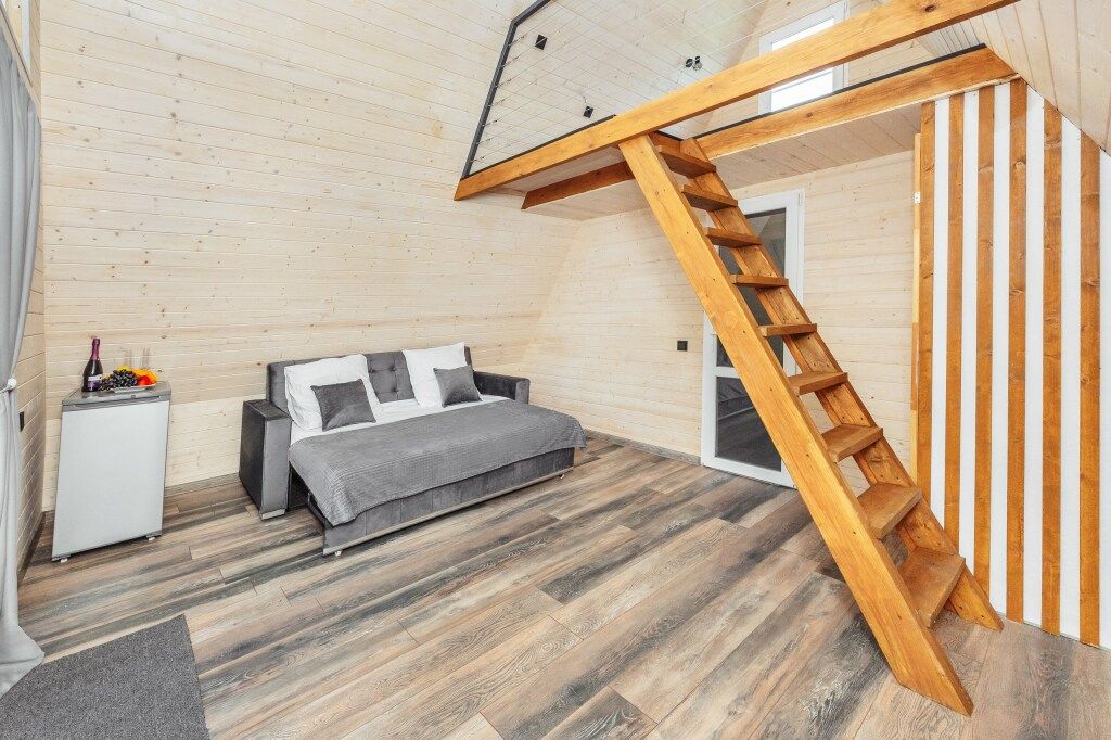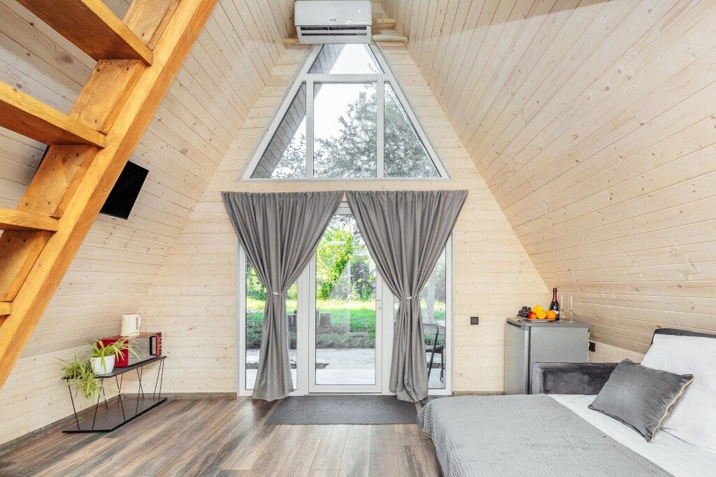 Эко-коттеджи «ДиАлекс» расположенный в Гудауте, находится в пешей доступности от центра города. Эко-коттеджи построены по двухэтажному проекту “А-фрейм”. В них комфортно размещаются до 5-ти гостей. Из техники вы можете видеть кондиционер, телевизор, холодильник, чайник. В ванной комнате есть всё необходимое.