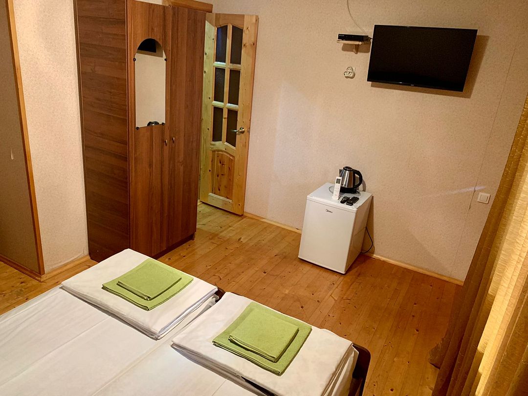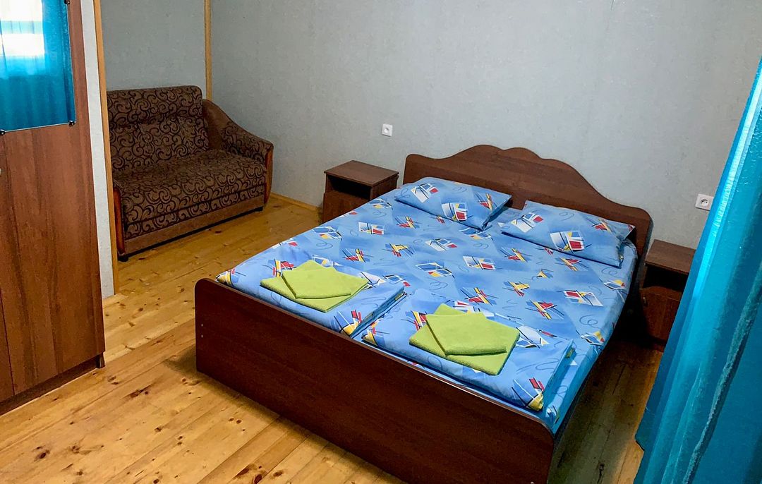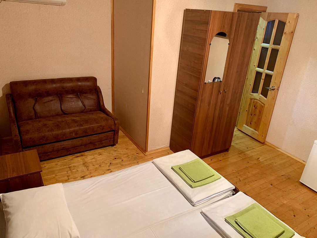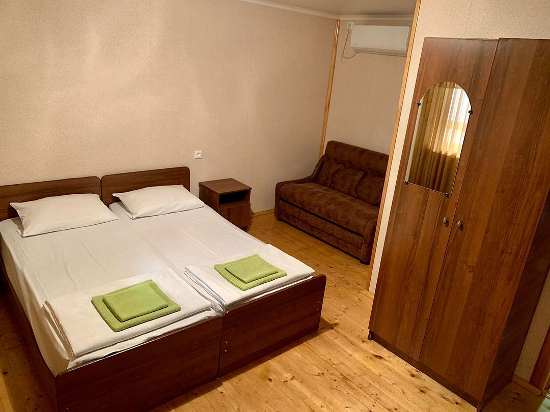 Гостевой дом разместился всего в 300 метрах от моря. К услугам гостей двухместные однокомнатные номера со всеми удобствами. В каждом номере установлена сплит-система, есть санузел с душем, в комнатах — холодильник, телевизор со спутниковыми телеканалами, электрочайник.