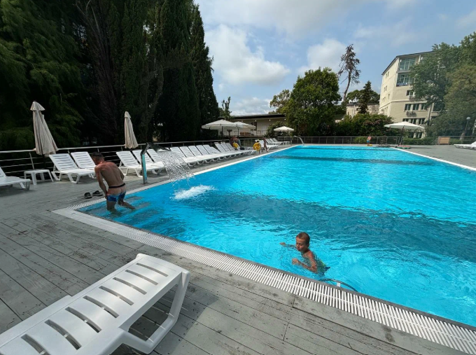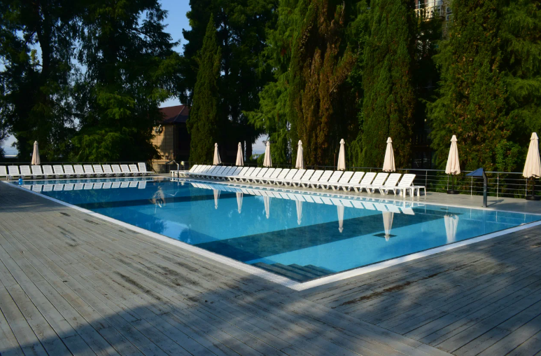 Размеры: 25 x 12 мПлощадь: 300 м²Глубина (диапазон): от 130 до 170 смОткрытый бассейн с подогревом — это уникальное место для отдыха в любое время года. Пространство вокруг бассейна оформлено в стиле современного курорта, с зоной шезлонгов, зонтиками и живописным видом на окружающий ландшафт. Вода всегда поддерживается комфортной температуры, что позволяет наслаждаться плаванием даже в прохладную погоду. Бассейн подходит как для взрослых, так и для детей, создавая атмосферу уюта и релакса под открытым небом.