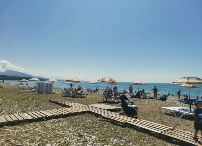 Расстояние от аэропорта Сочи или ж/д станции Адлер — 79 км, от российско-абхазской границы — 74 км