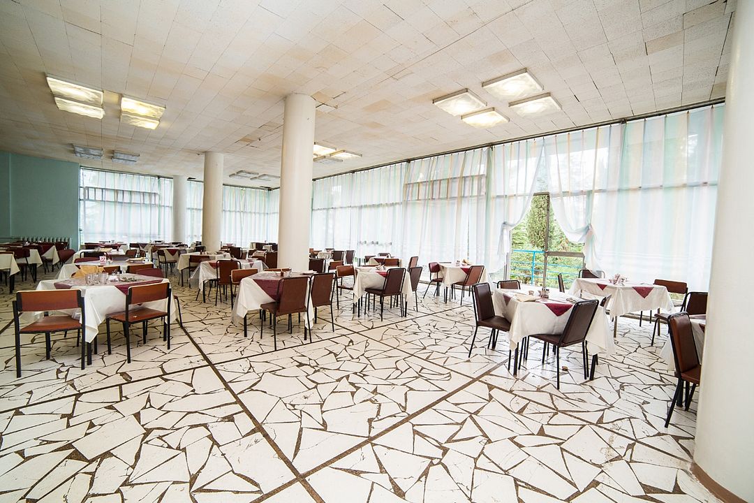 Питание клиентов осуществляется 3 раза в день, комплексно, в общей столовой. Действует ночной бар.