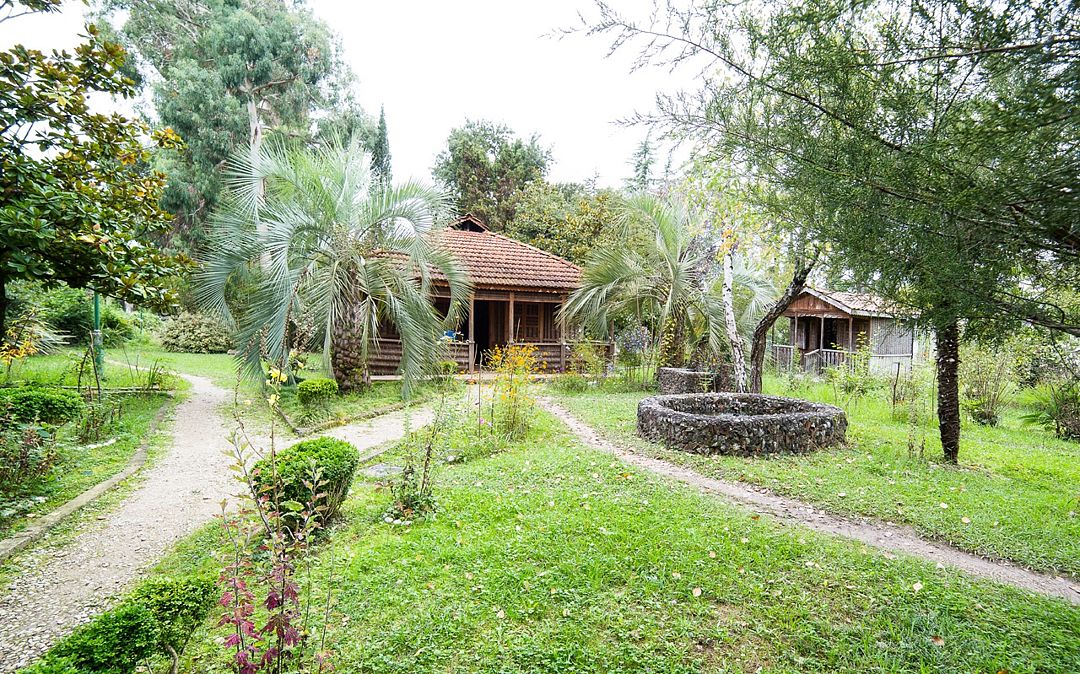 Парковая территория базы полна чудесных субтропических деревьев, кустарников и цветов, среди которых расположены уютные зоны отдыха, тропинки, беседки, коттеджи и 4-этажное здание основного корпуса базы. Все это – под круглосуточной охраной. Жилой фонд гостиницы представлен номерами «стандарт» и «блочный» (эконом-класс). Все номера имеют санузлы с душем, индивидуальные во всех номерах, кроме «эконом», где они общие на блок. Холодильники и телевизоры тоже в наличии, кондиционеры – выборочно. Все недостающие бытовые приборы можно взять напрокат.