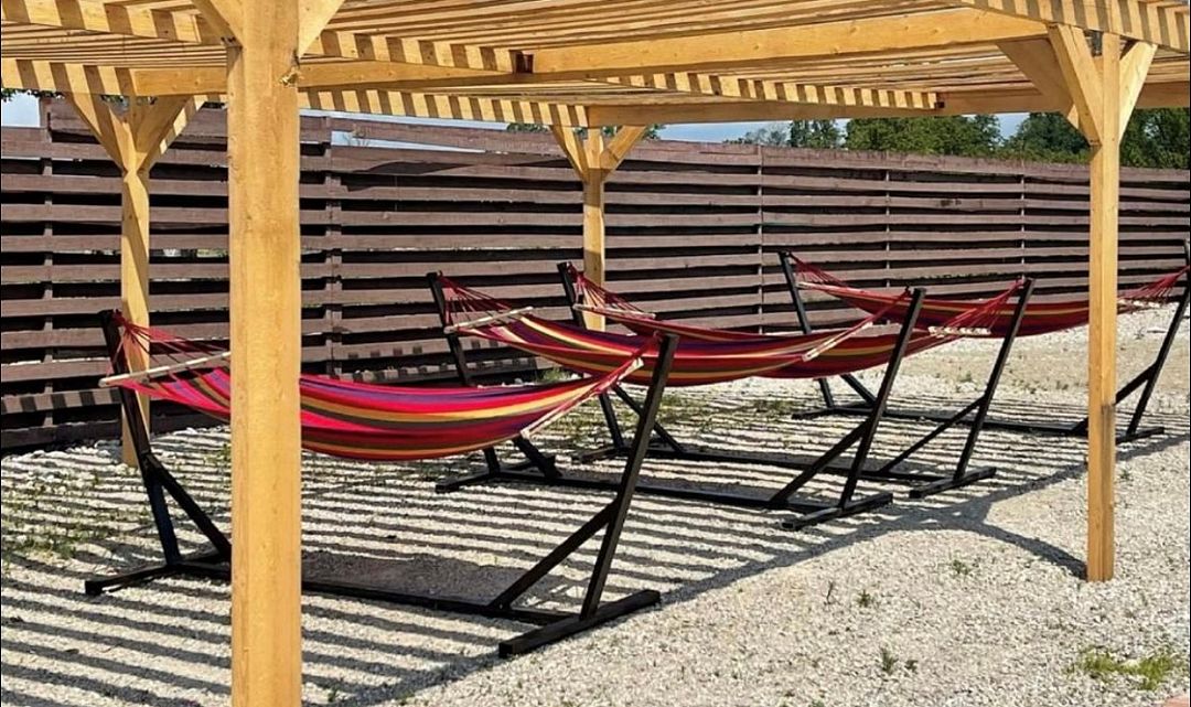 К услугам отдыхающих столовая, беседка с гамаками, уличными подушками, местом для барбекю и детская игровая мини-площадка. Предусмотрен доступ к беспроводному интернету Wi-Fi, можно воспользоваться утюгом и стиральной машинкой для самообслуживания. Возможен заезд с небольшими домашними питомцами приученными к лотку.